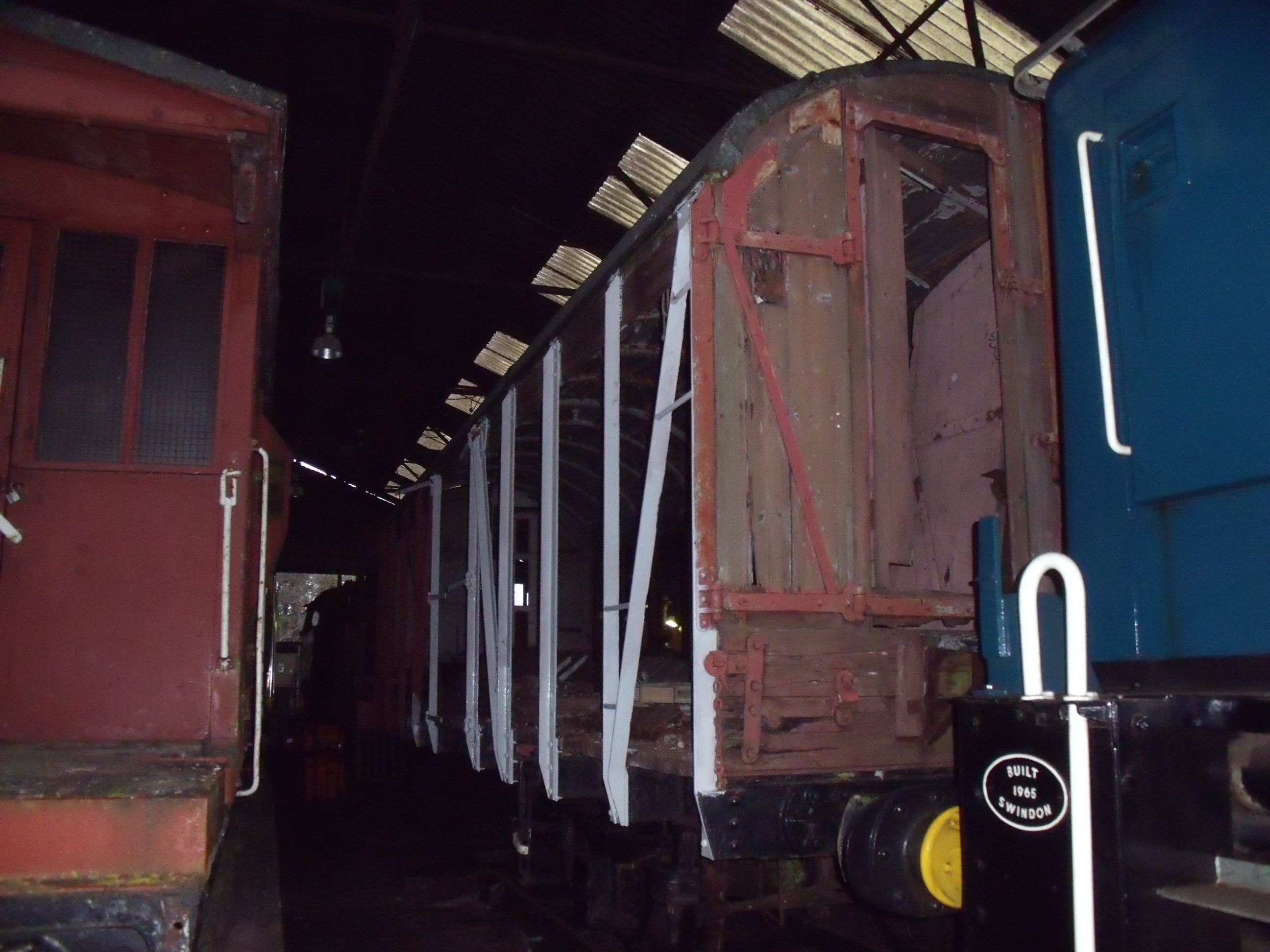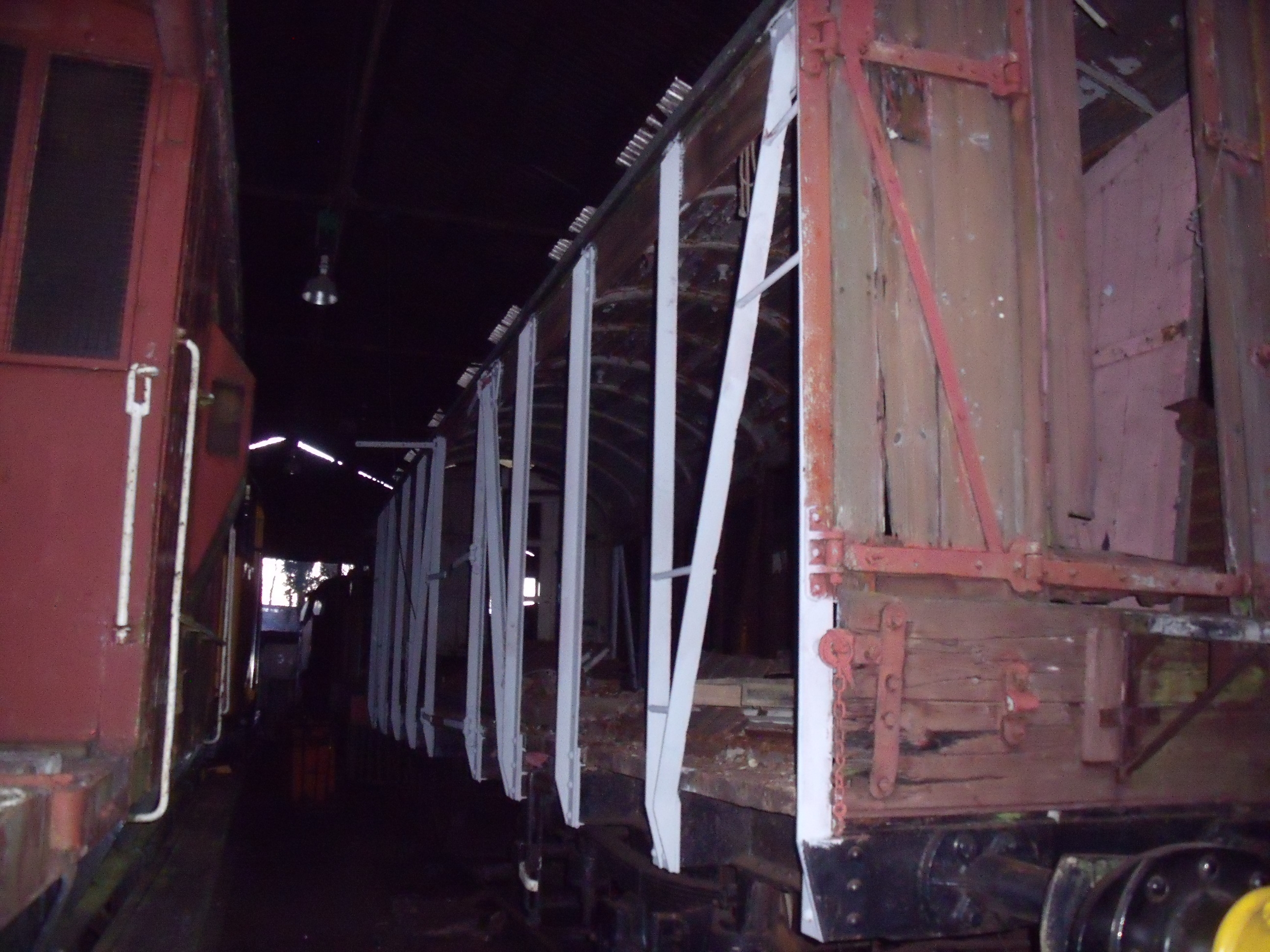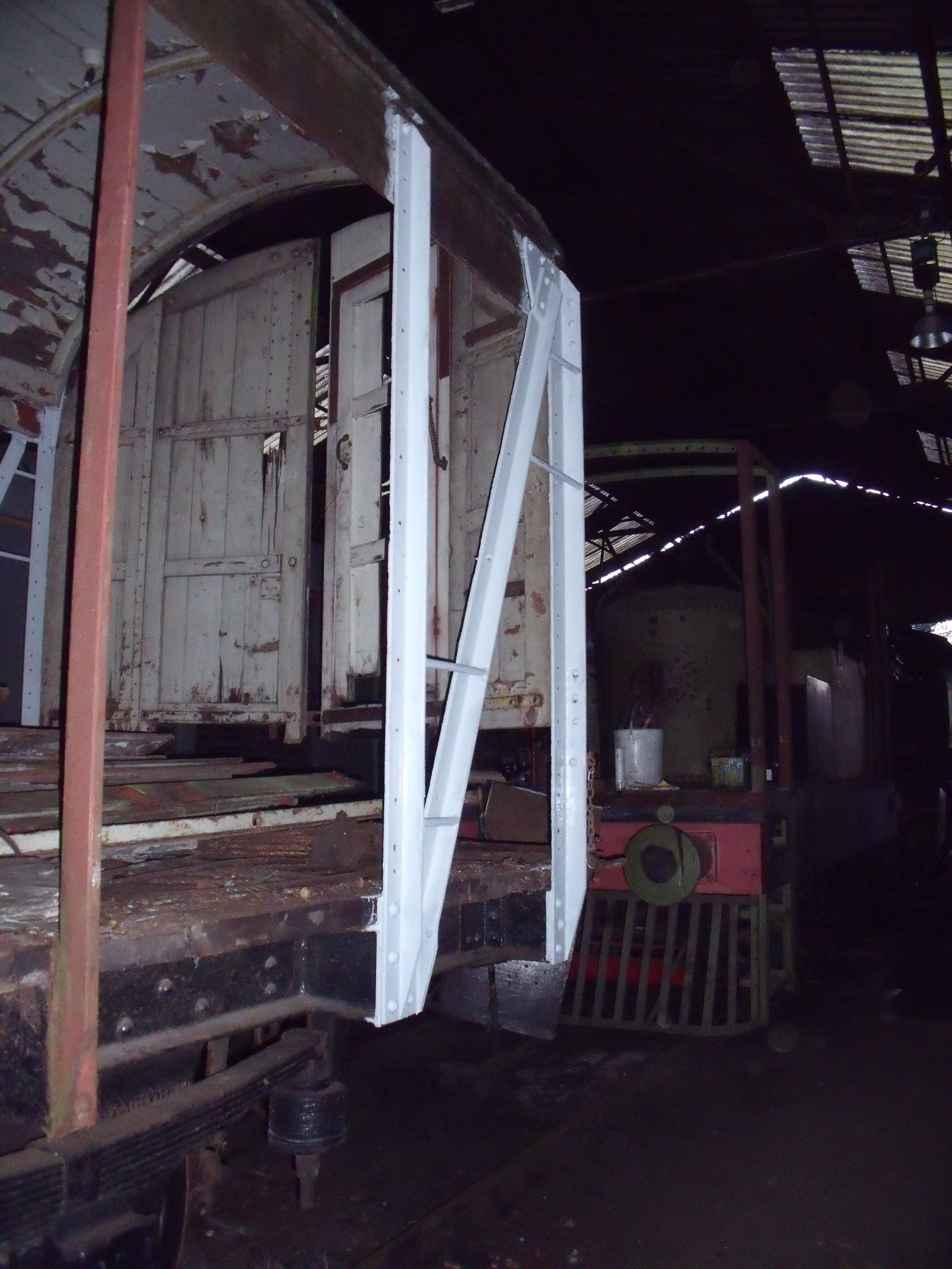 Wagon Group volunteer Philip has spent two successive working sessions cleaning up and priming the structural steelwork. By the end of the first day, he had cleaned up the rust and primed up to the central doors on the south side.