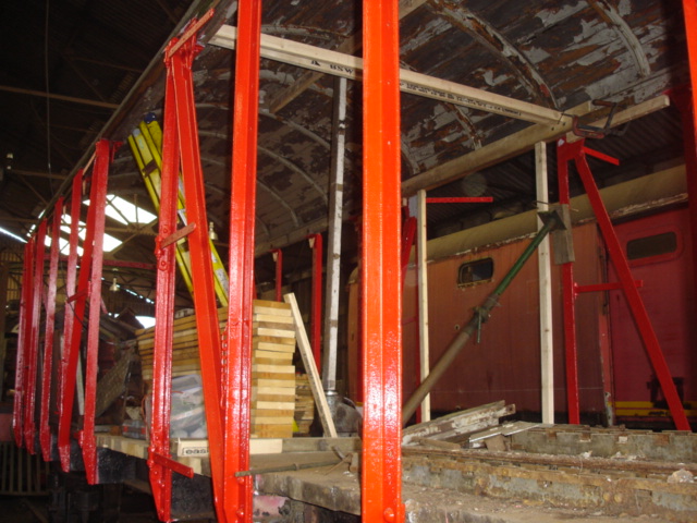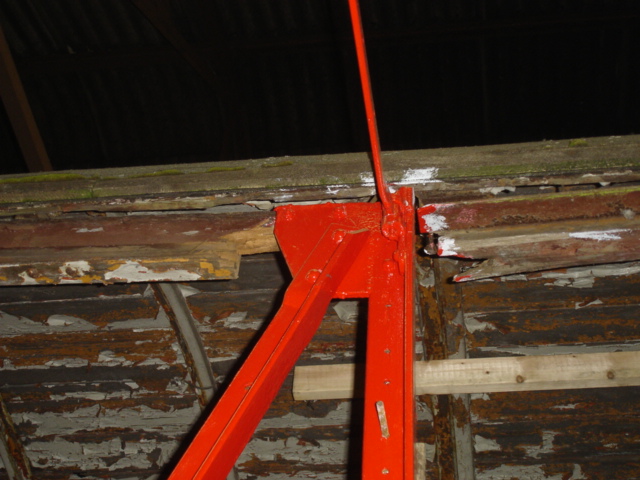 Extra vertical timbers have been added for temporary support, until we are able to finish bracing everything up. It may be that we start to put in the timber side cladding on this side as a priority, in order to fully complete the bracing to the interior before attempting to access the roof, which requires stripping and re-covering.
