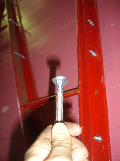A few bolt holes were inaccessible due to the grab-handles that had been added to the frame for the “Octopussy” filming. As they were few in number and solid fixing was provided elsewhere, we cheated and glued short bolts in place for a satisfactory cosmetic appearance.