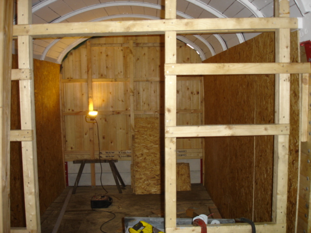 The interior lining is now complete, the partition wall seen here (the side door jamb, painted red, can be seen to the far right).