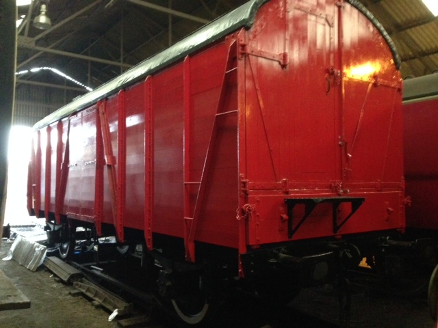 Following on from the previous update below, and as hoped, we managed to get an opportunity to repaint the second MoD wagon, No.4730, in time for the February steam gala and associated photo charter next weekend. Both wagons have also been fully lettered and their underframes cleaned and painted to give a very presentable final appearance.