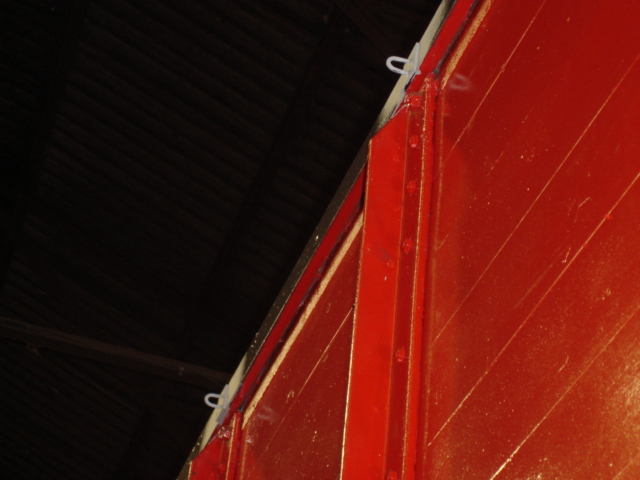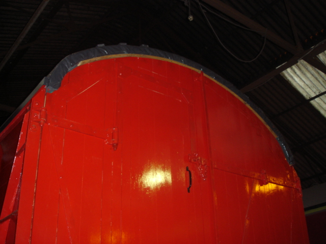 Curved packing strips were added to fill the gap between the top of the end doors and the underside of the roof. All these components above have since been painted up to topcoat.