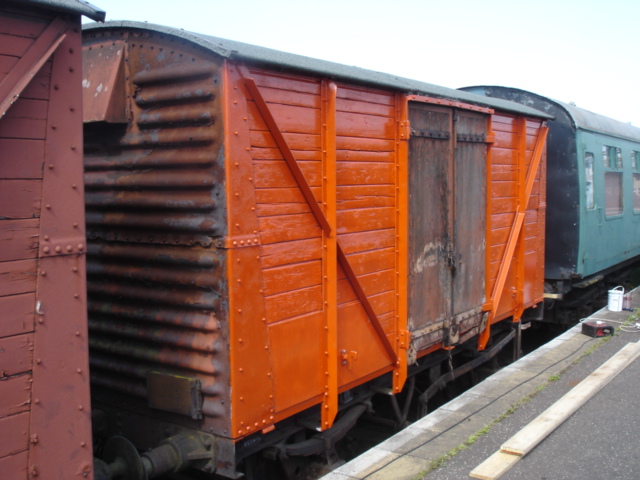 We are still awaiting an opportunity to shunt the externally-completed CCT 37071 out of the shed and bring in our next restoration projects. In the meantime, we are continuing with Operation ‘Tidy Up’, this being the cosmetic improvement of some of the box vans in the TPO platform at Wansford: