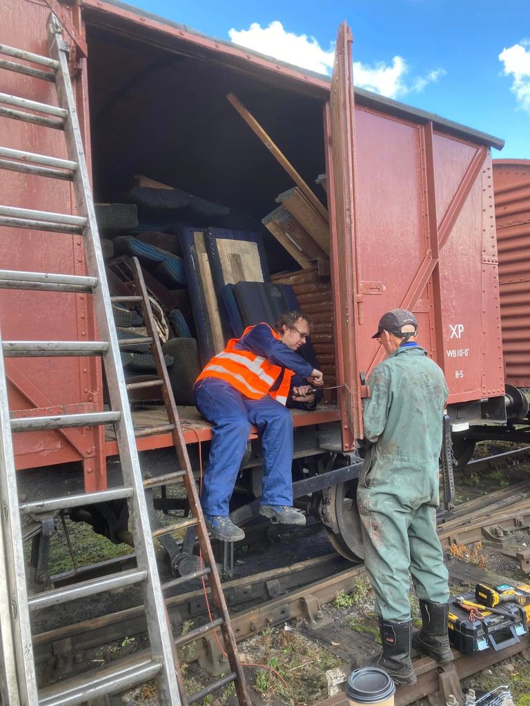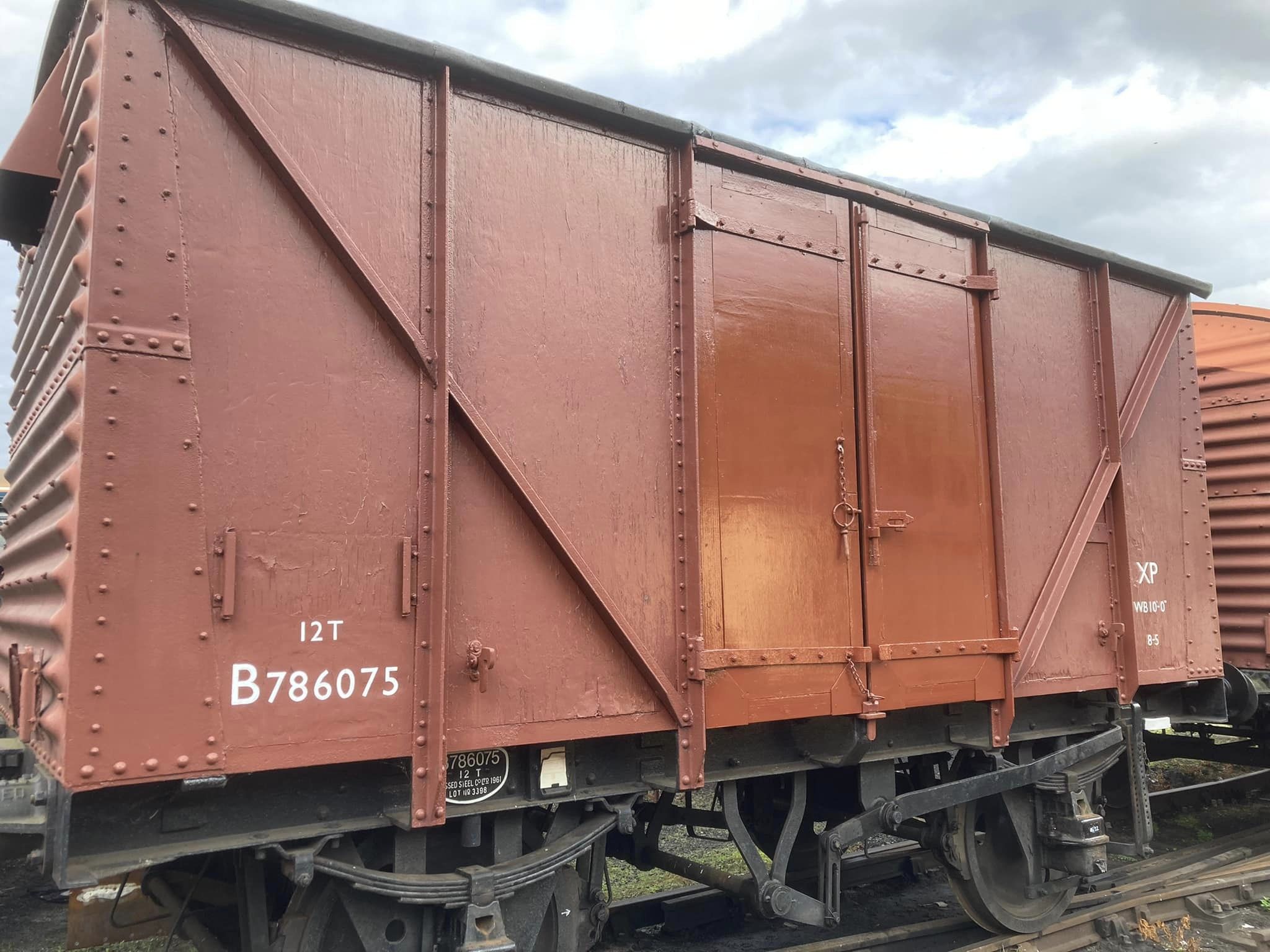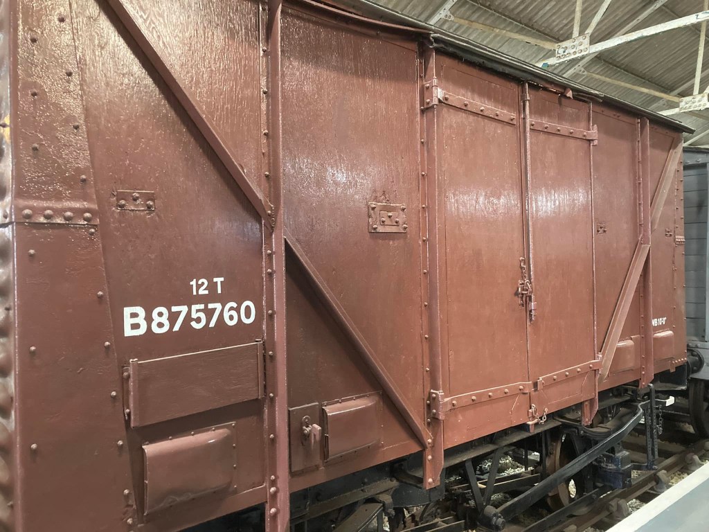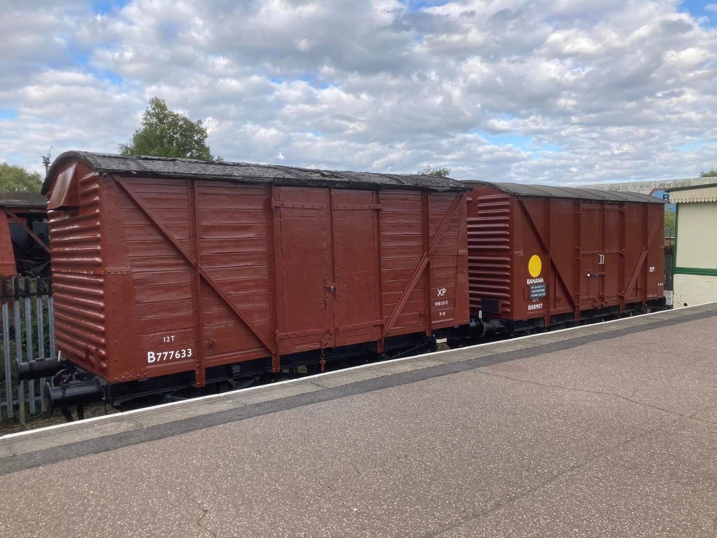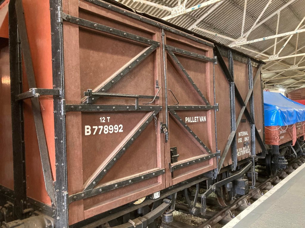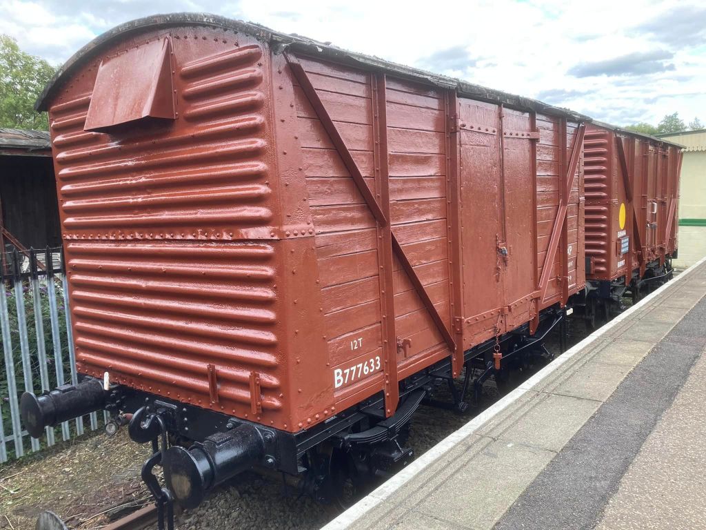 August & September saw continued work on cosmetic restoration of B881987 (Banana Van as Wagon Museum) & B777633 in PNVR bay platform, and replacement of the doors on B786075 in Wansford Yard.