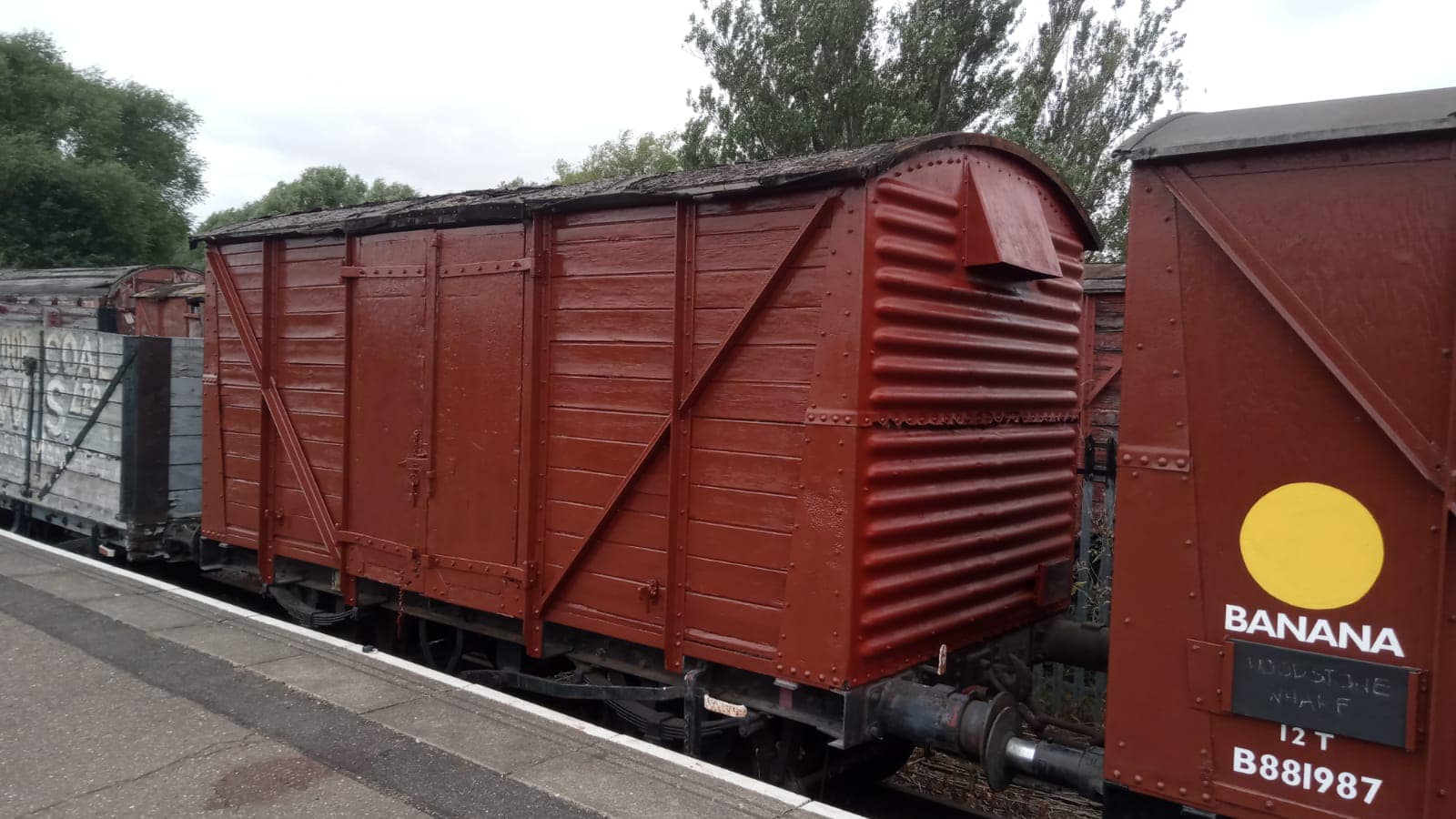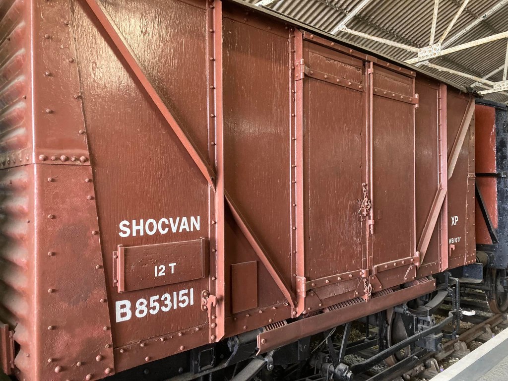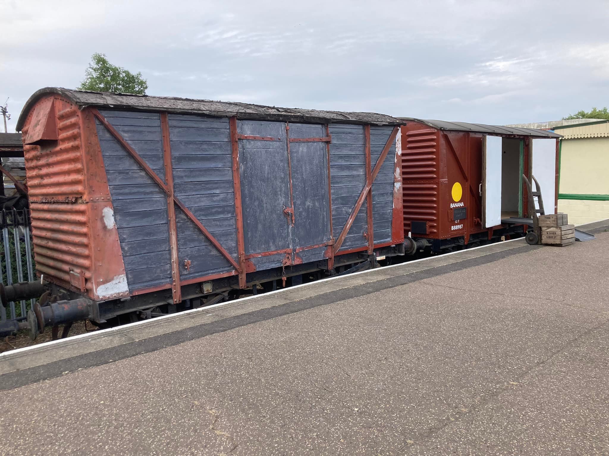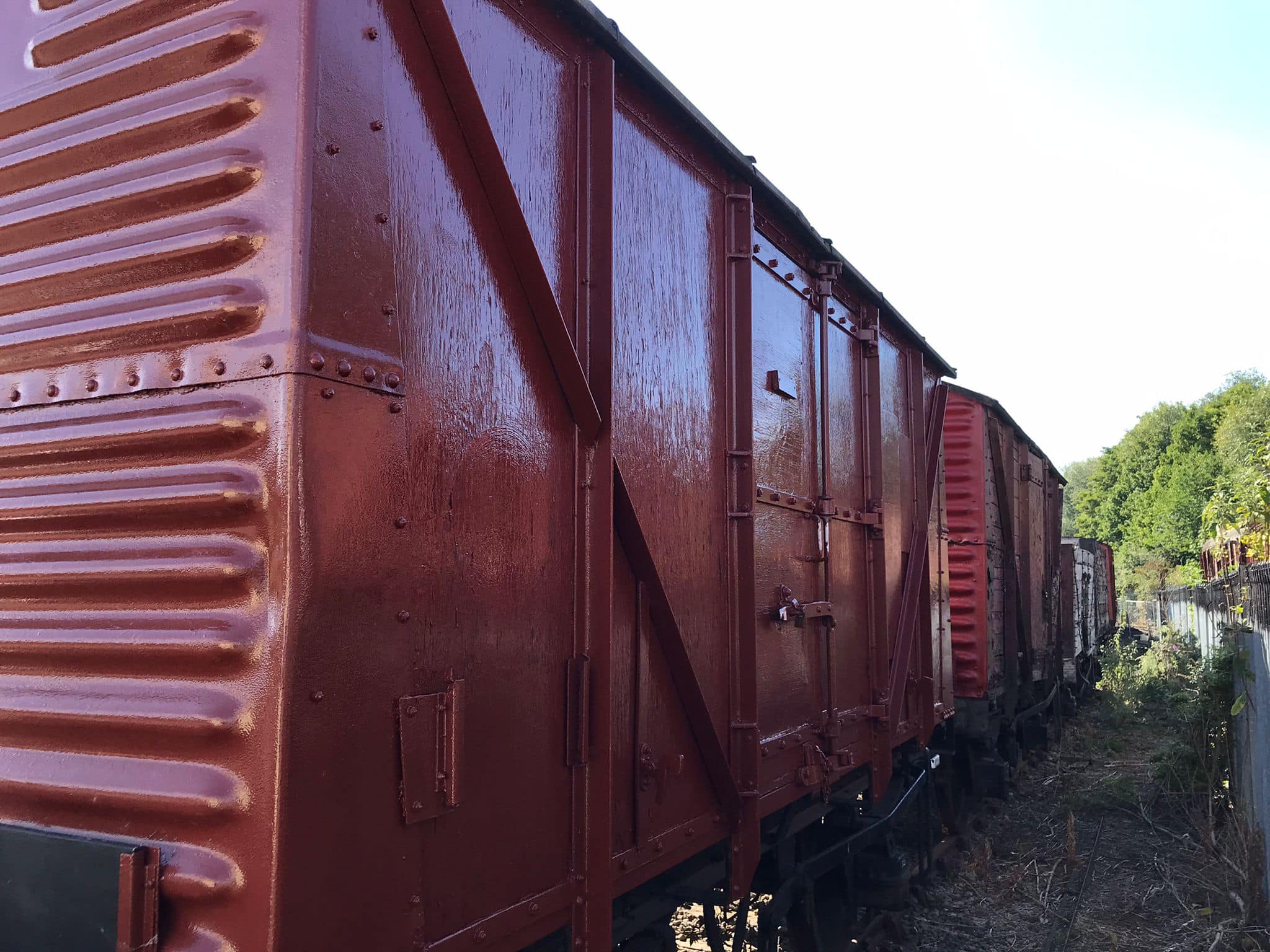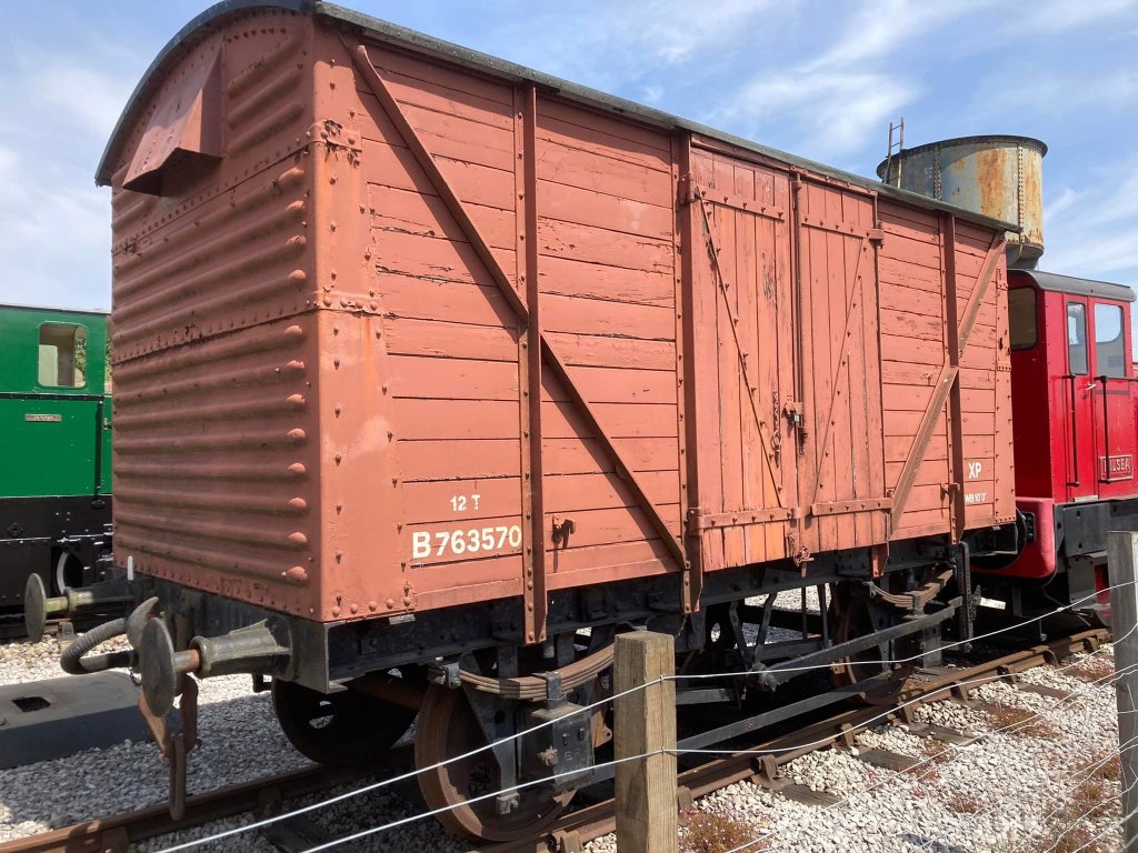 August & September saw continued work on cosmetic restoration of B881987 (Banana Van as Wagon Museum) & B777633 in PNVR bay platform, and replacement of the doors on B786075 in Wansford Yard.