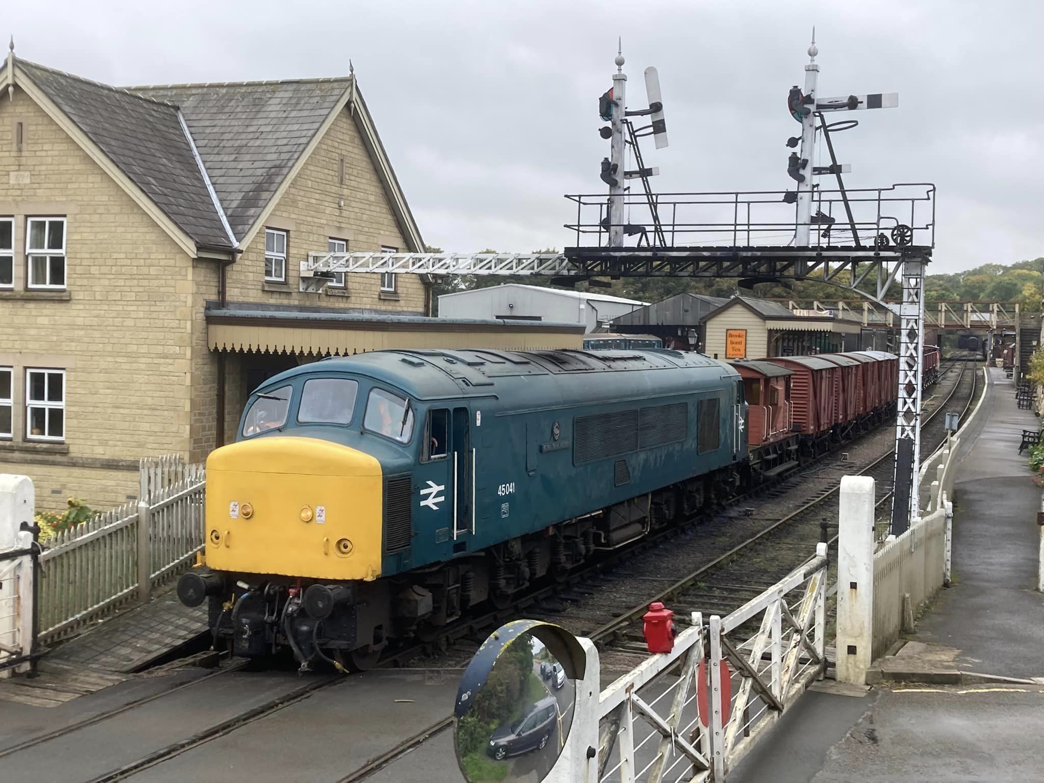 On the 14th October, using diesel traction in the form of Class 45 ‘Peak’ 45041 “Royal Tank Regiment”. Once again we were able to run with our longest rake to date consisting of 2 brake vans, 4 hoppers, 4 opens, and 5 vans.