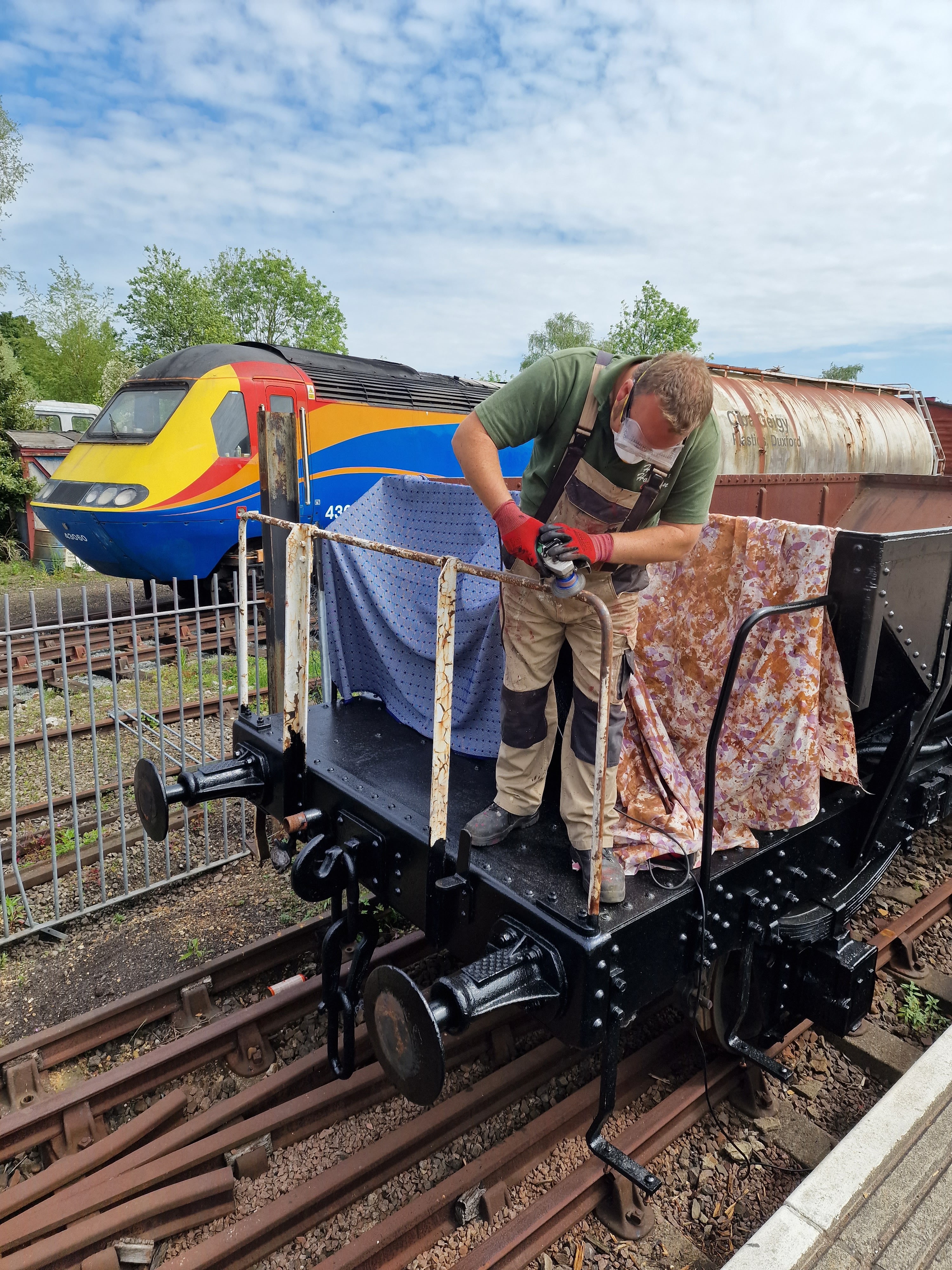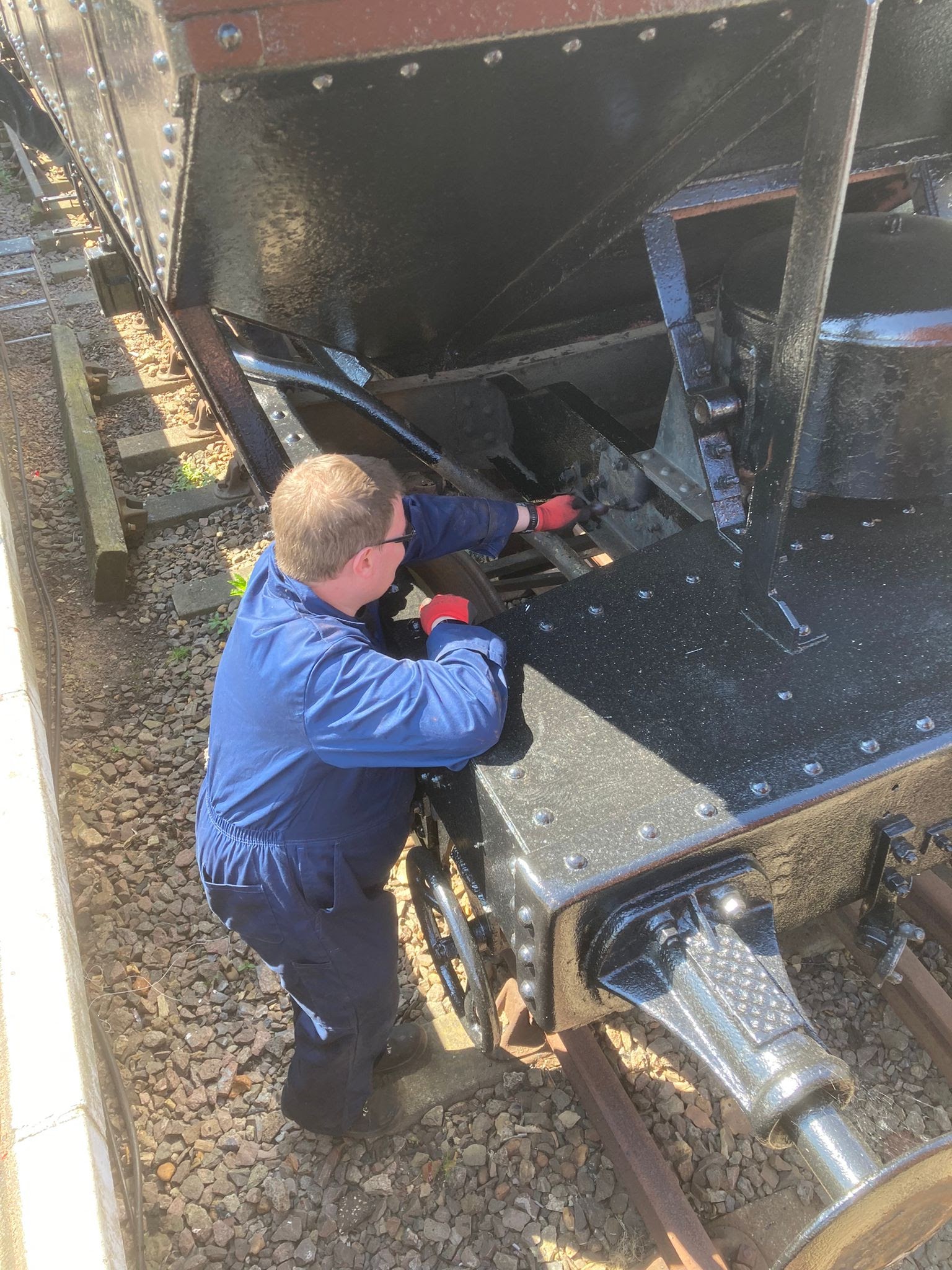 For the rest of the team after a spot of cleaning of B780952s frames they assisted Ed with moving some items from one of the vans in Rail World as he begins repairs to the corrugated ends.