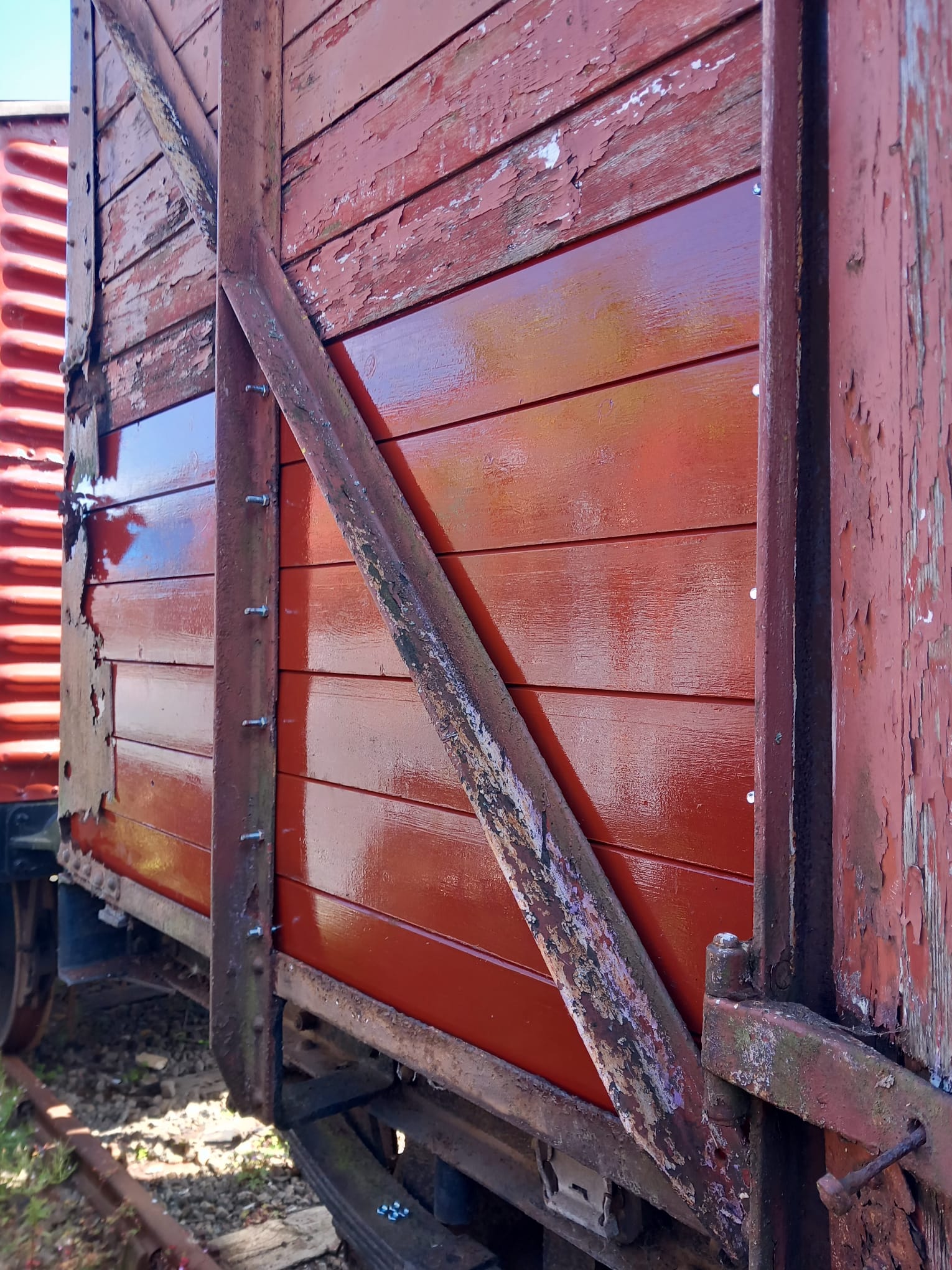 This was followed with a touch more paint for this and 780952, with the ends of the roof hoops and the metal work over the doors receiving Bauxite