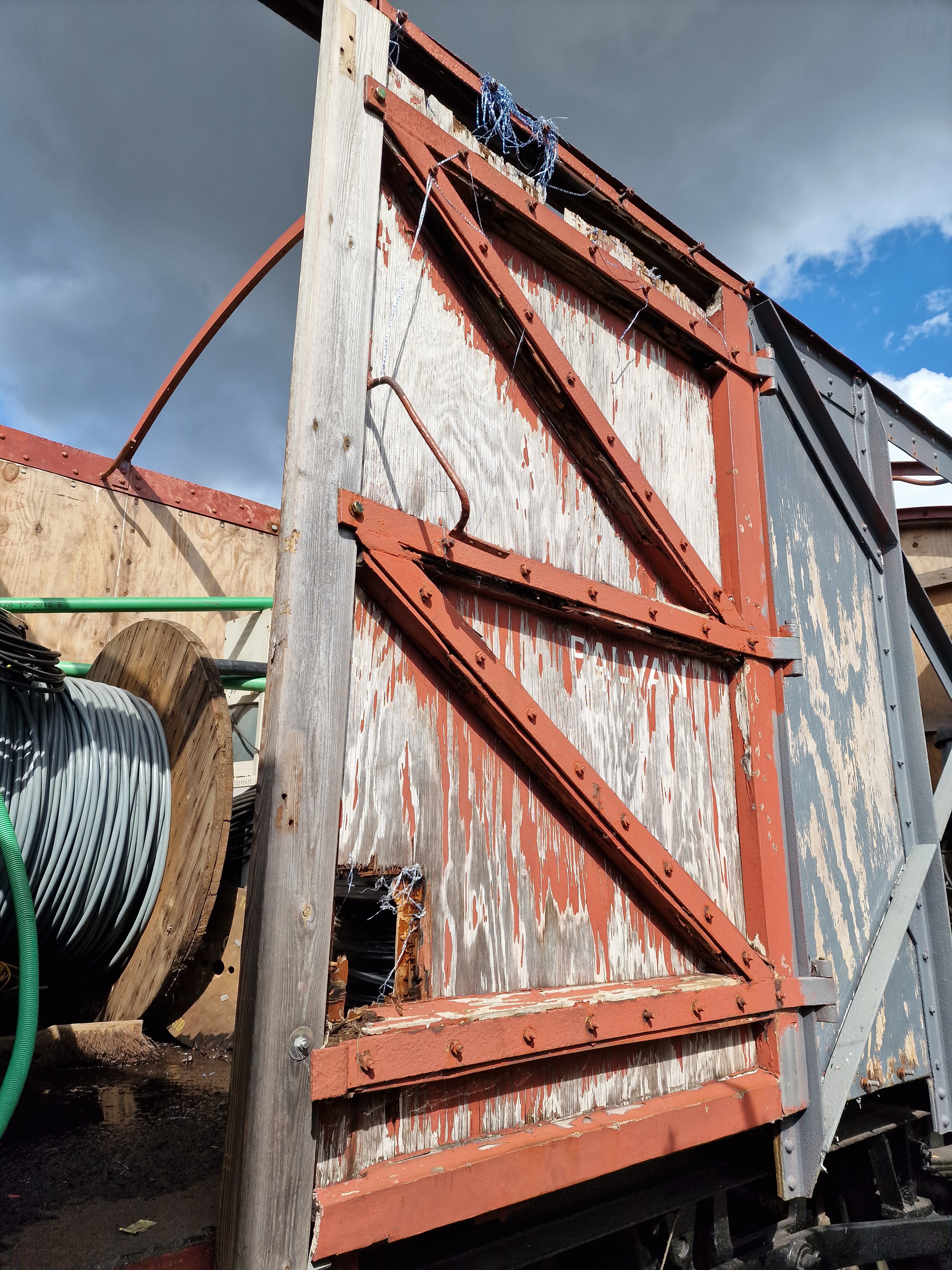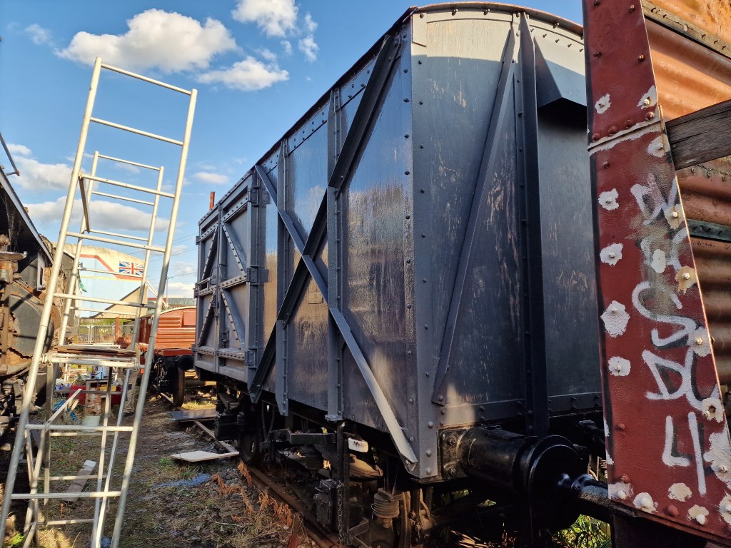 This means the Palvan now has a roof again, a new door is required as well as repairs to another, then a further undercoat and topcoat. The Conflat requires a floor after its chain pocket sheets.