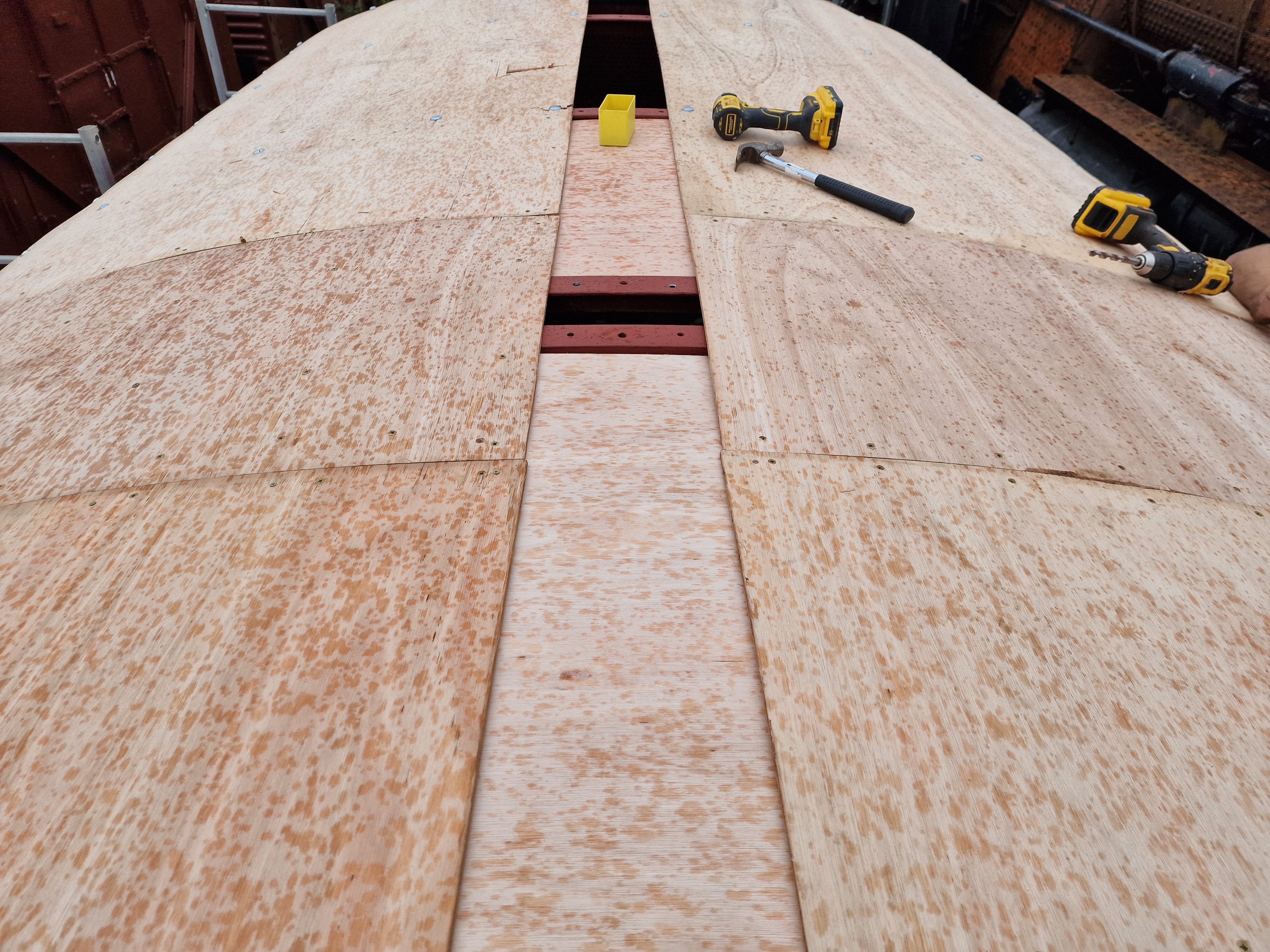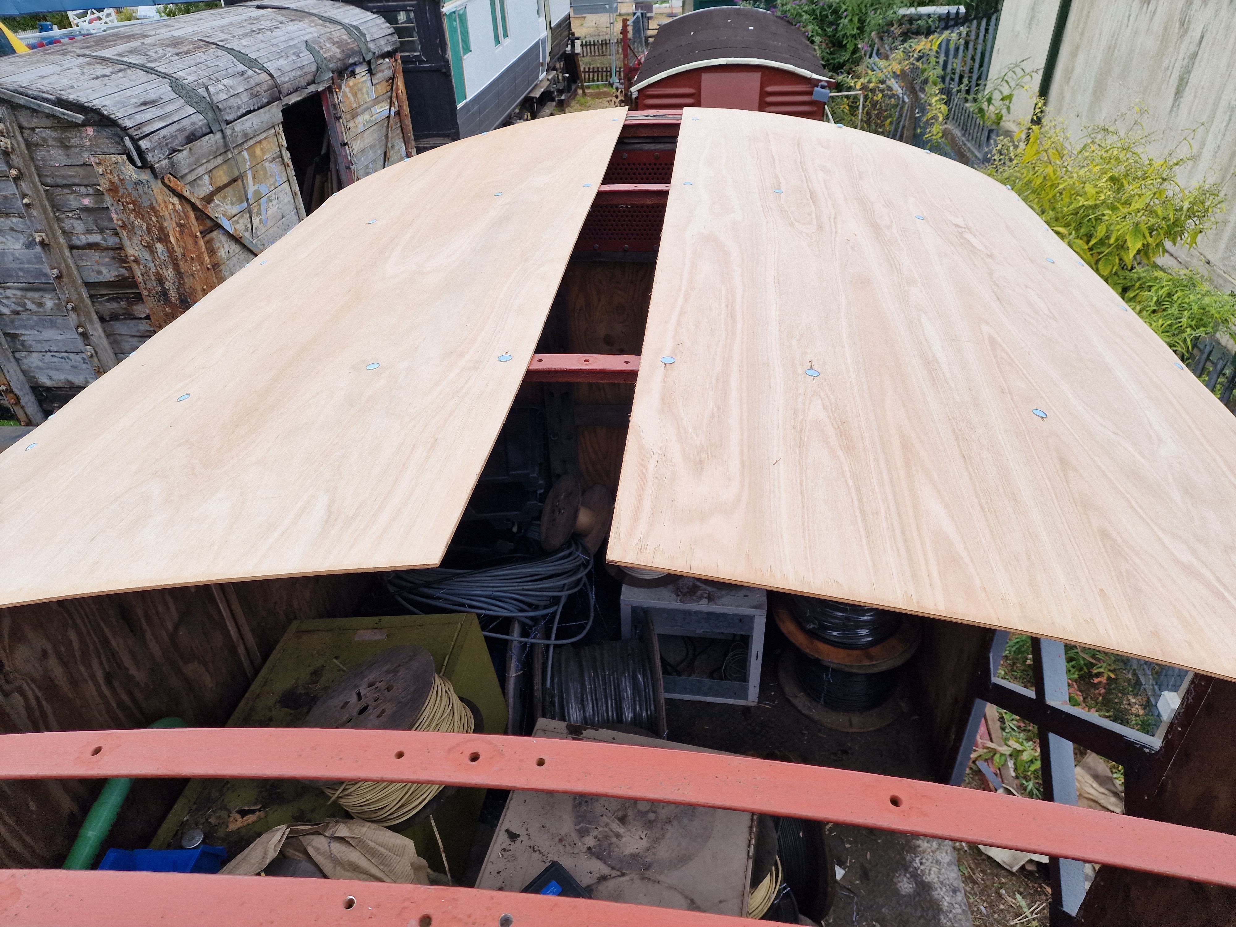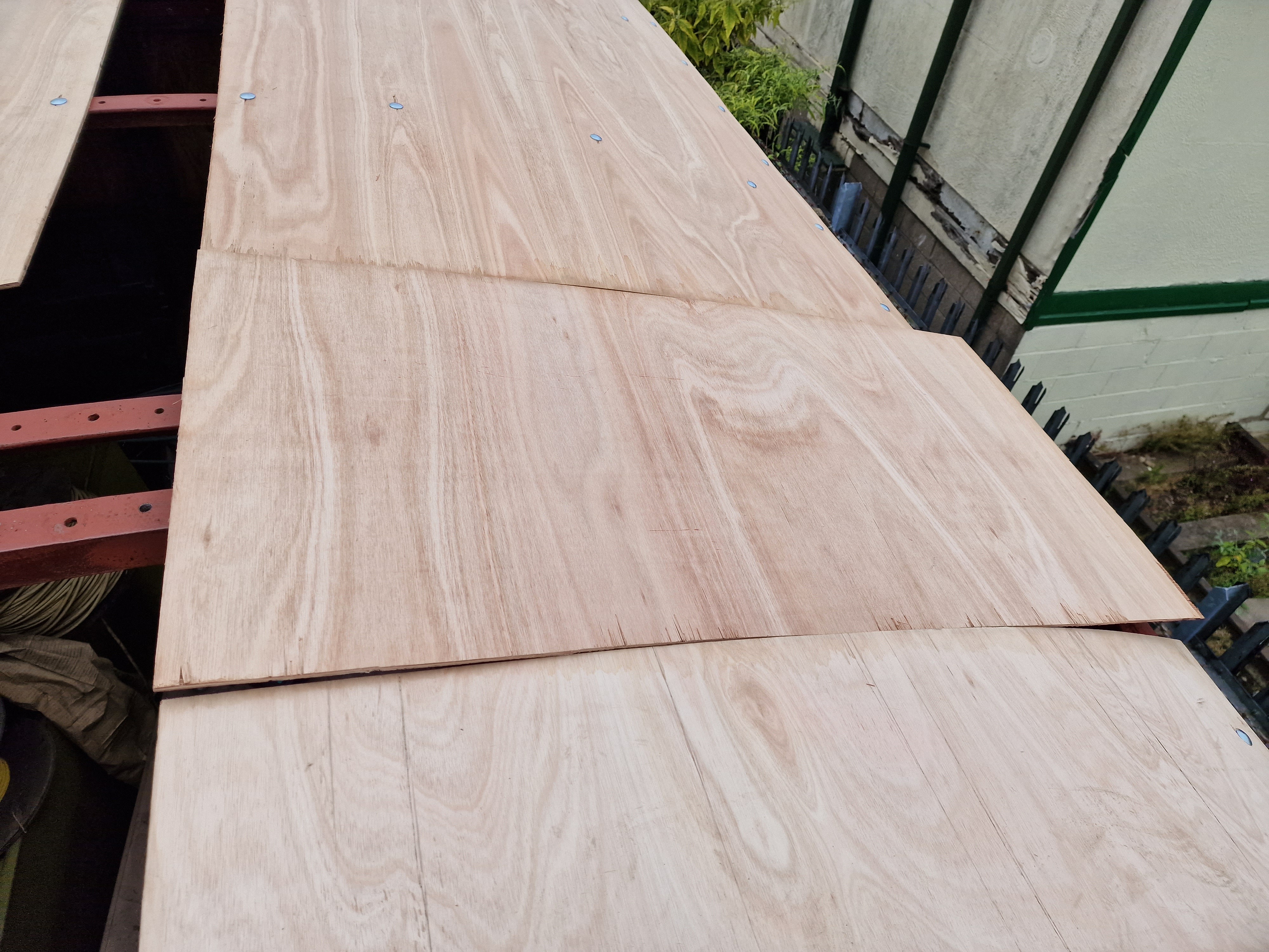 Further support pieces were then screwed along the centre line of the roof and again topped off with 3 trimmed pieces of ply.