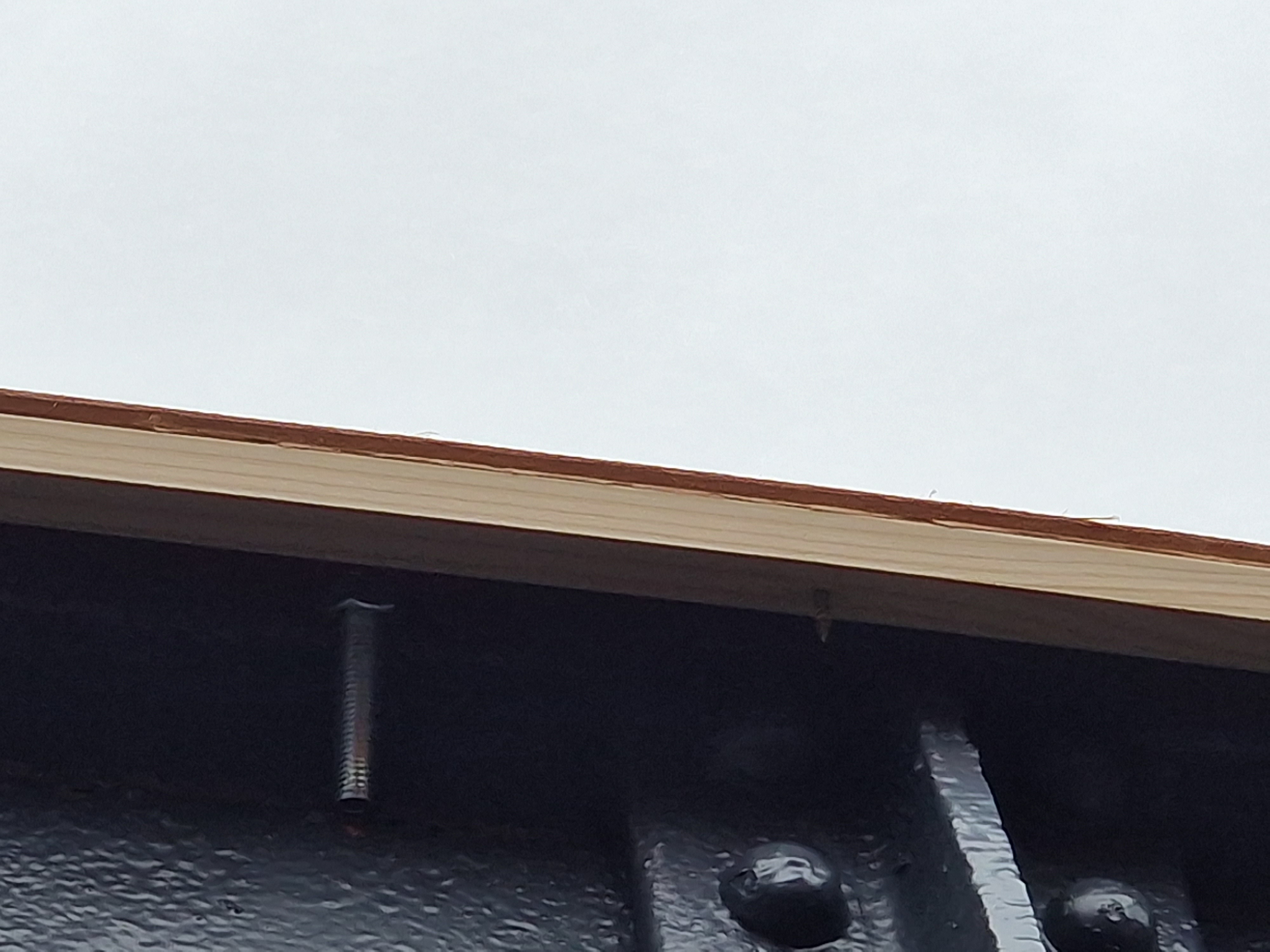 1”x1/2” wood strips were screwed to either side of the new roof ply and the all excess bolts, screws and ply lengths were trimmed.