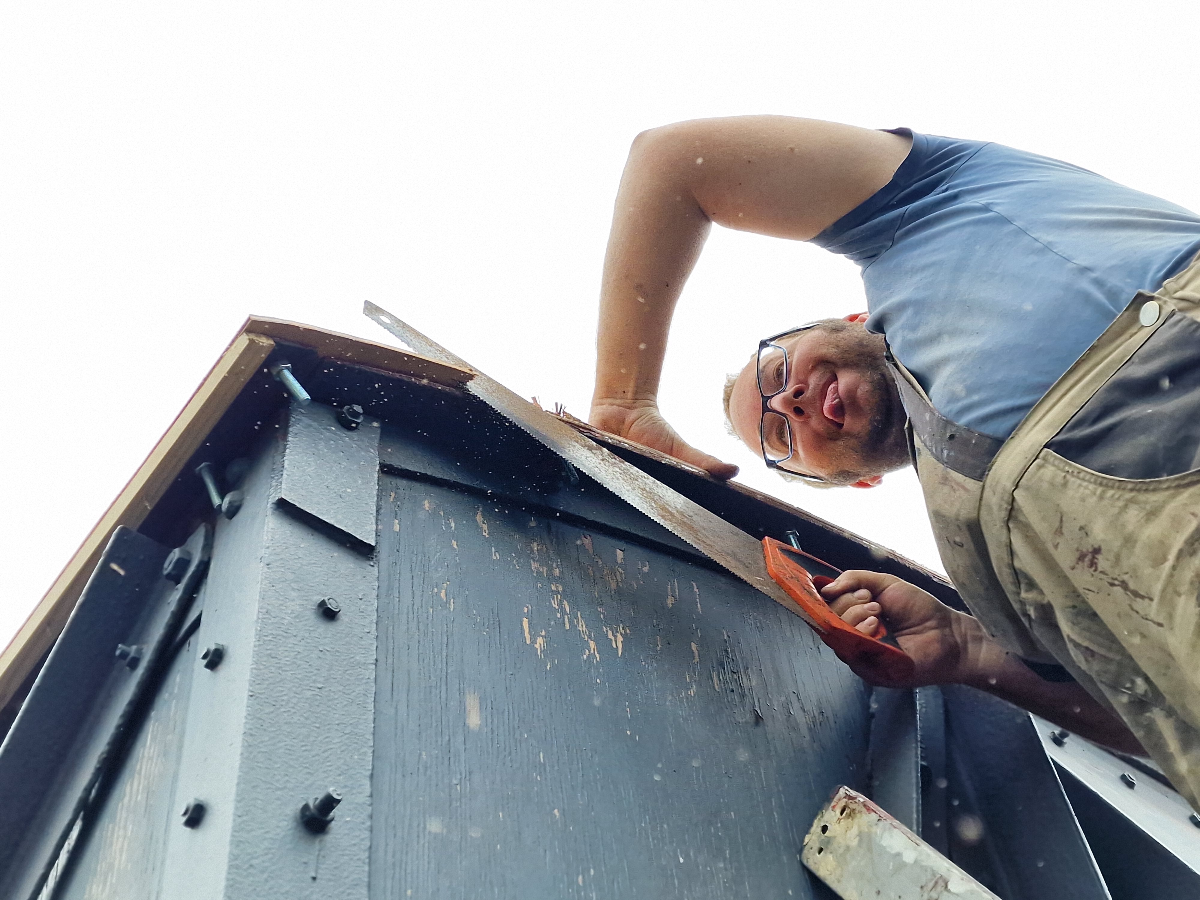 A rotten side sheet was also removed, with Jason and Tim cutting and drilling a replacement.