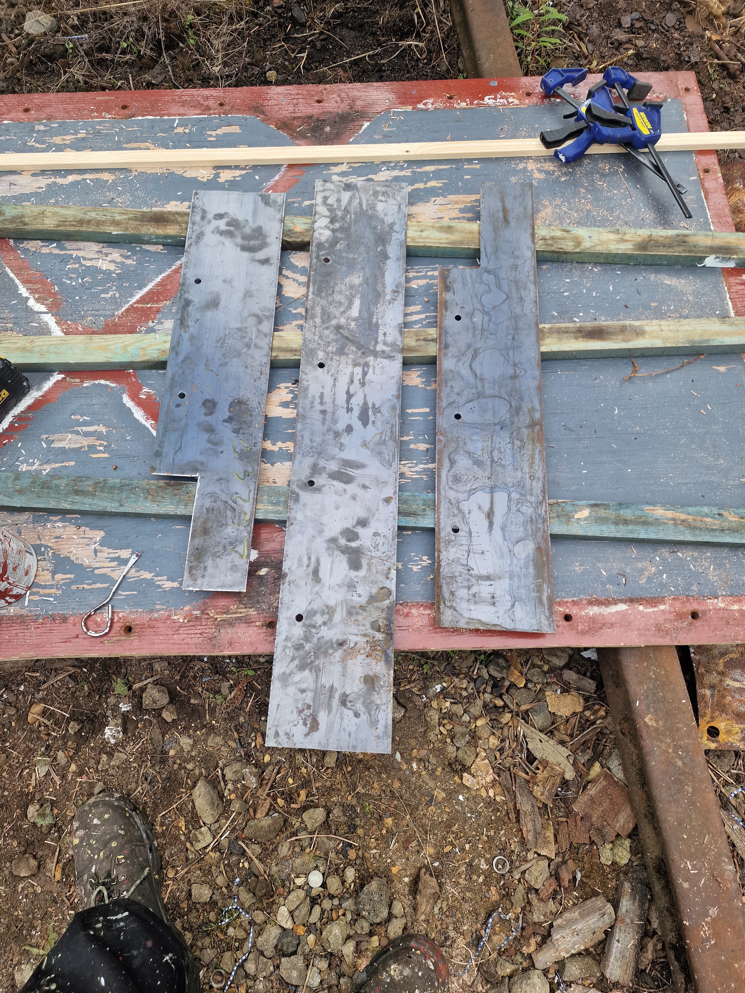 Trim panels were also manufactured for the lower portion of the side sheets. These are to strengthen the ply sheets which have deteriorated a little over the years the vehicle has been idle, although a full reskinning would be preferable with the rest of the ply in very good shape, this is a cost saving measure, with only the worst sheet replaced as described above. The plates were drilled and primed.