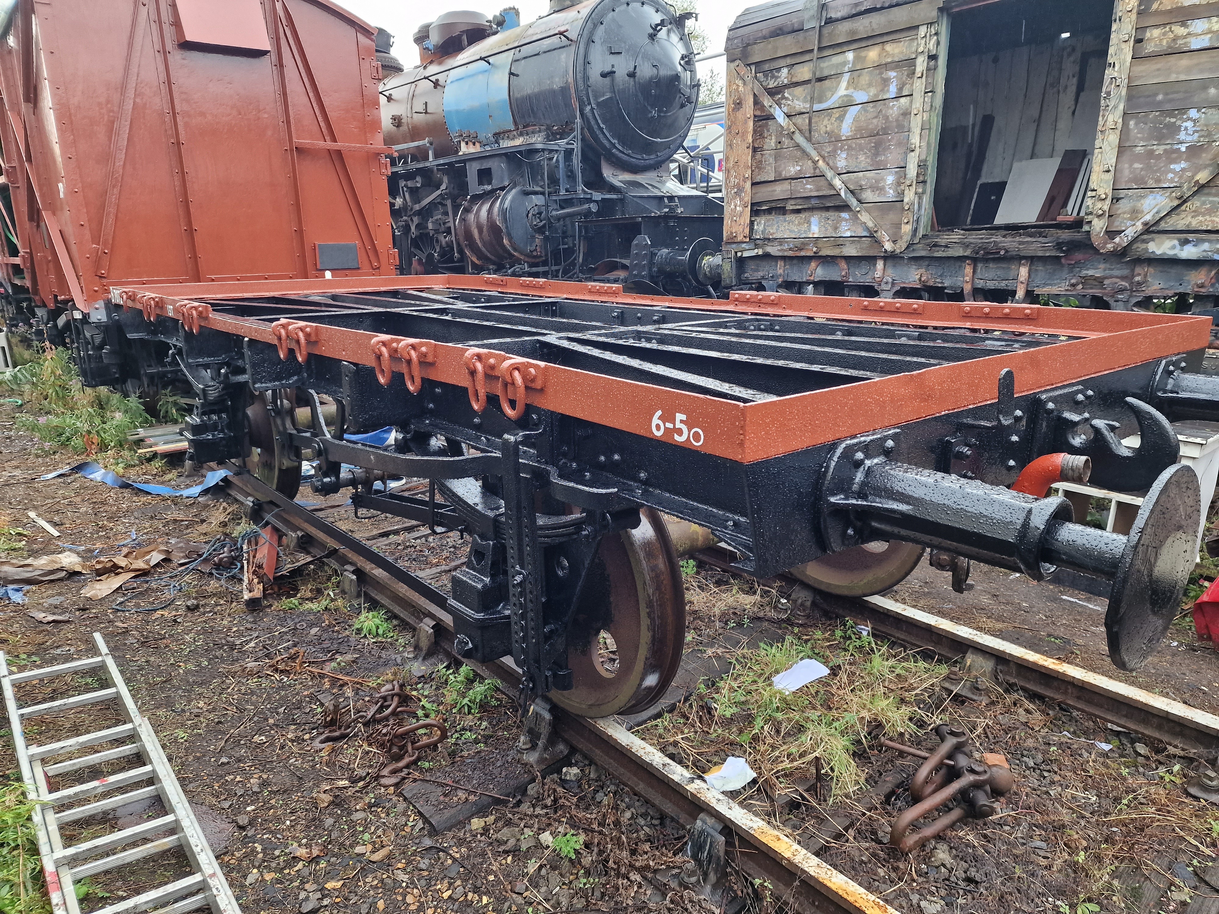 The Conflat receiving it’s running number, Gross weight and Tare. The rest of the signwriting will go on the chain pocket sides when they are fitted.