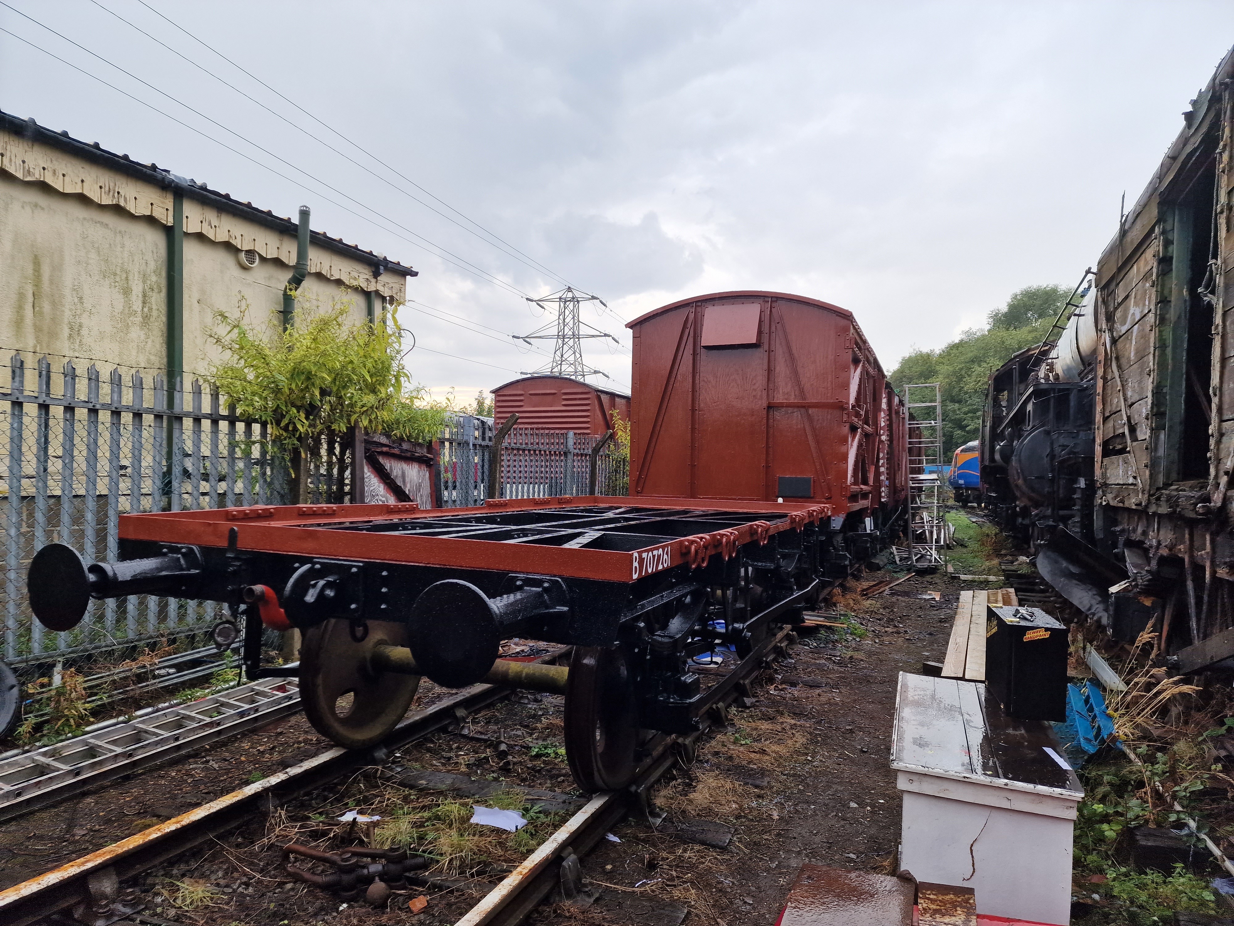 The Conflat receiving it’s running number, Gross weight and Tare. The rest of the signwriting will go on the chain pocket sides when they are fitted.