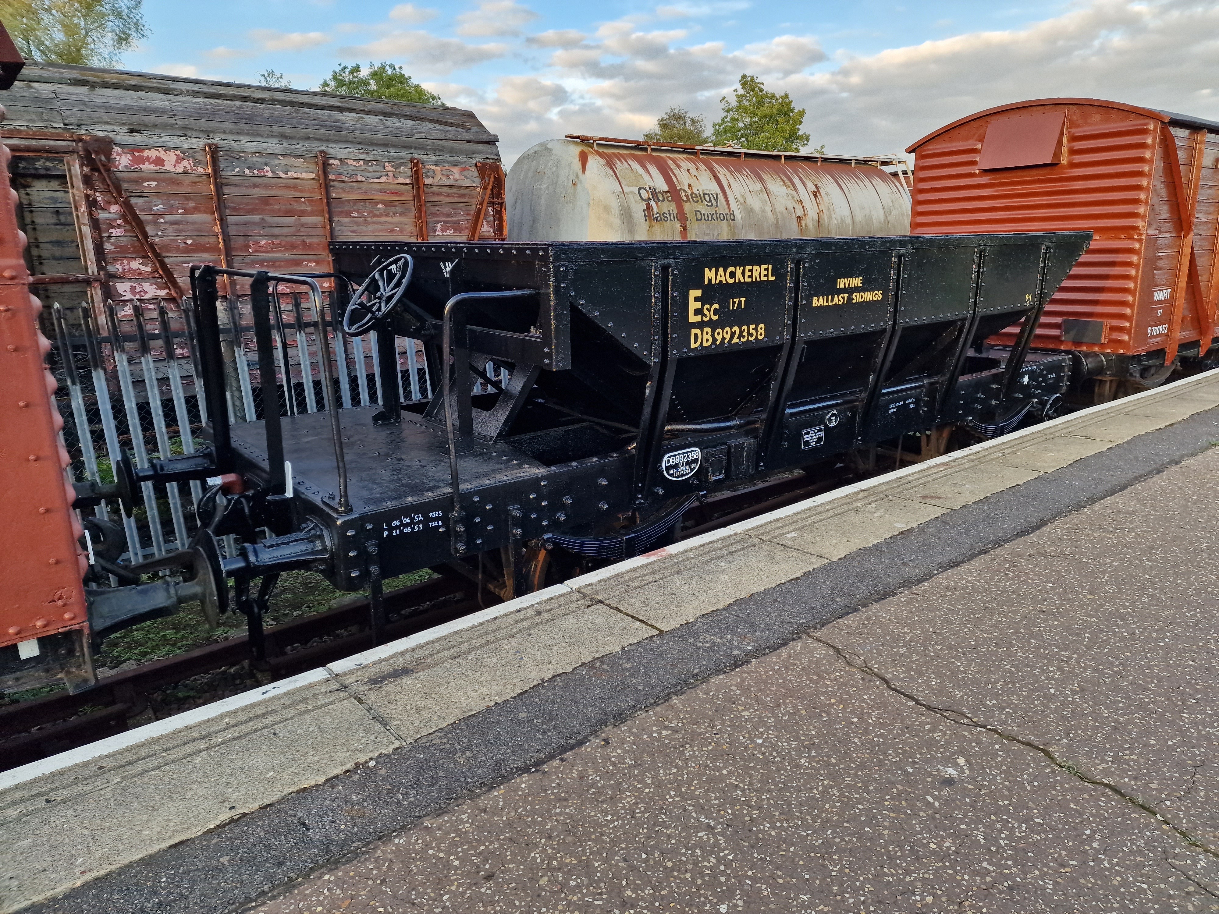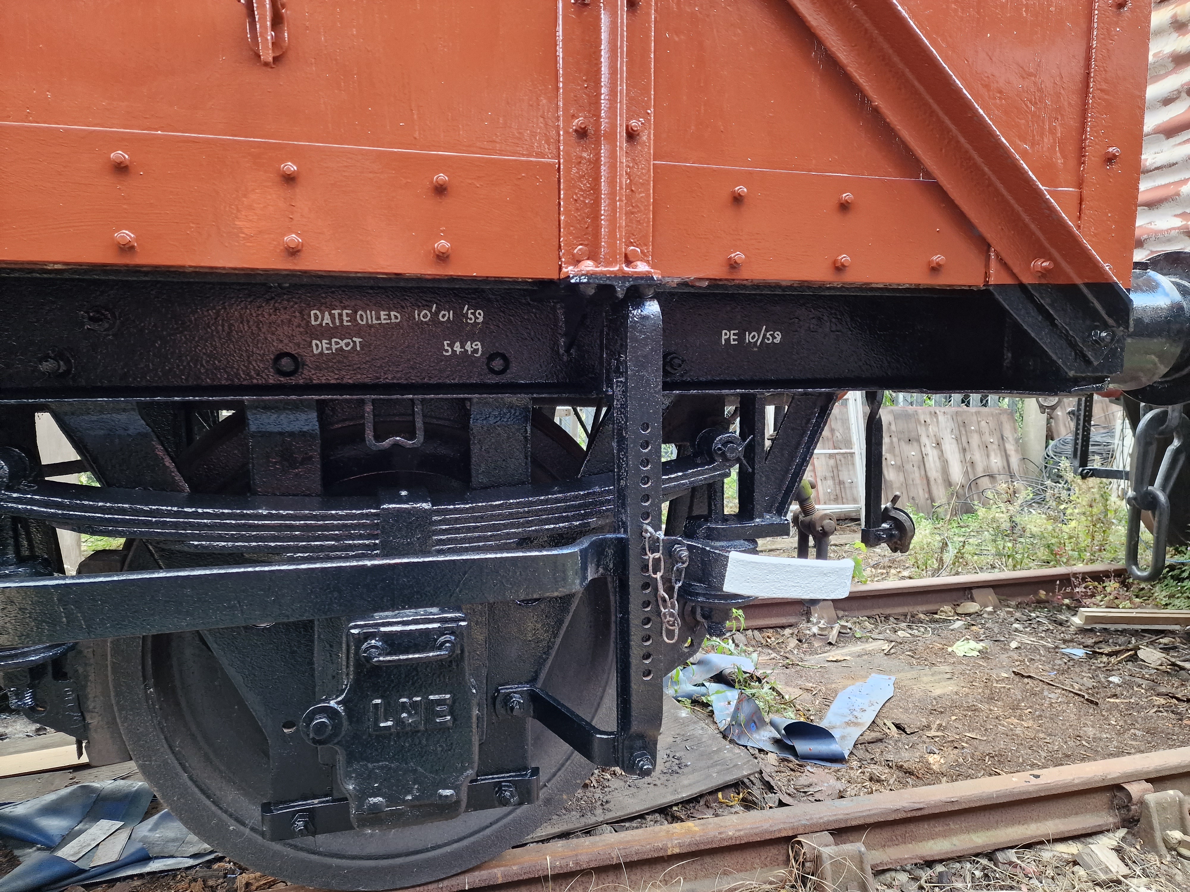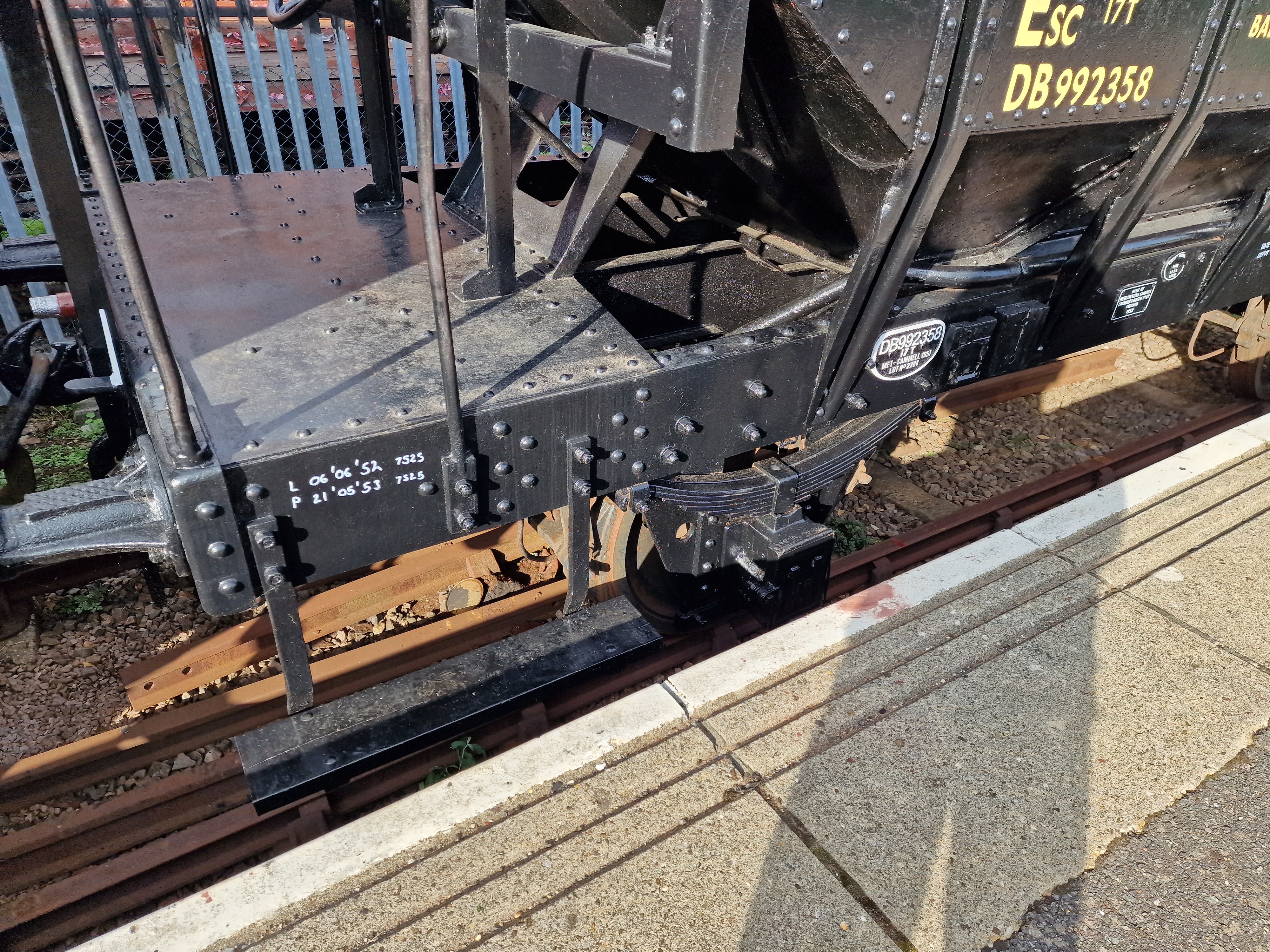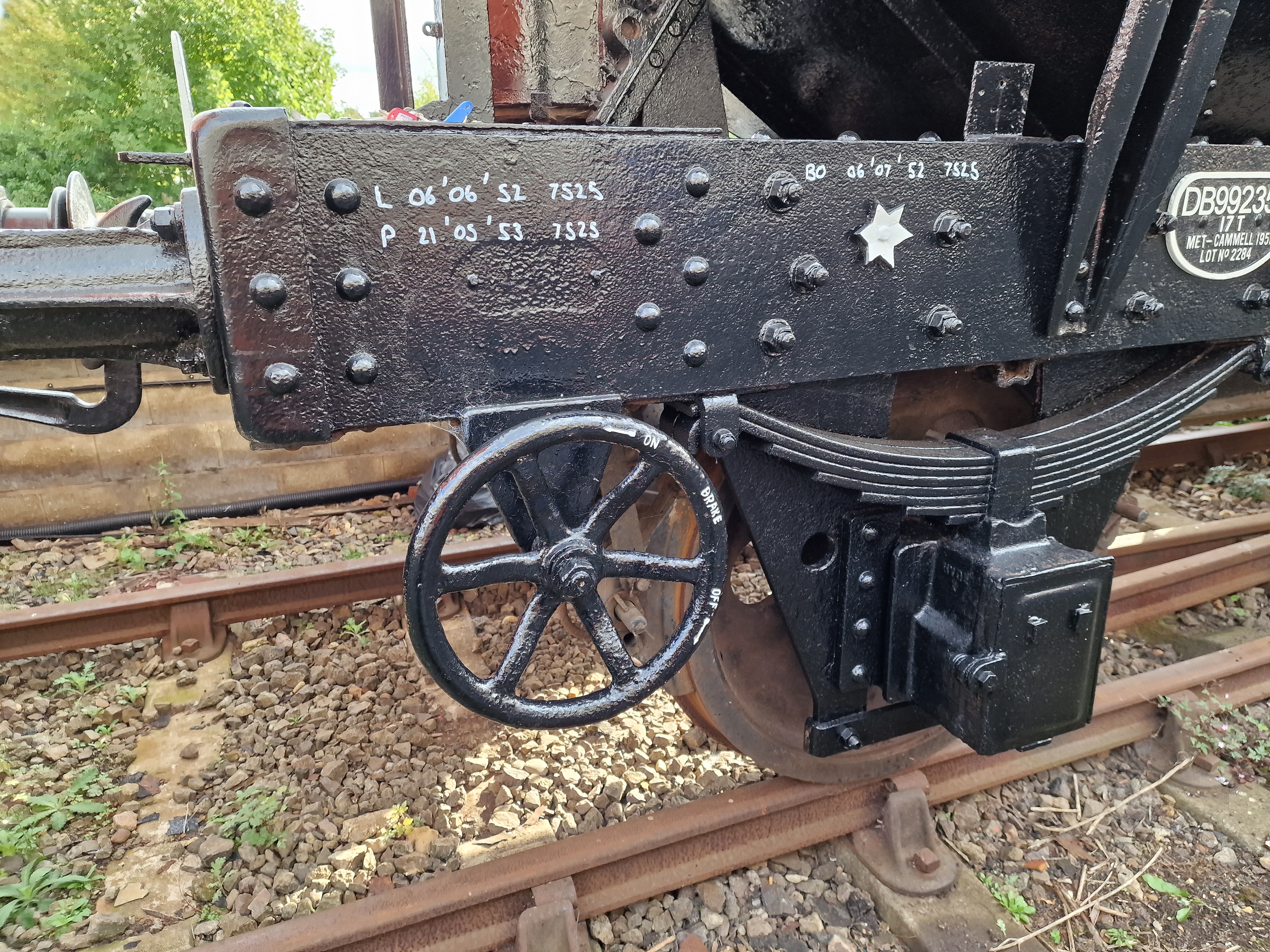 Brake handle ends and lamp brackets painted white and Roof covering date applied at either end of the wagon.