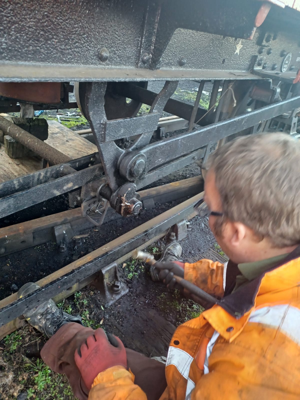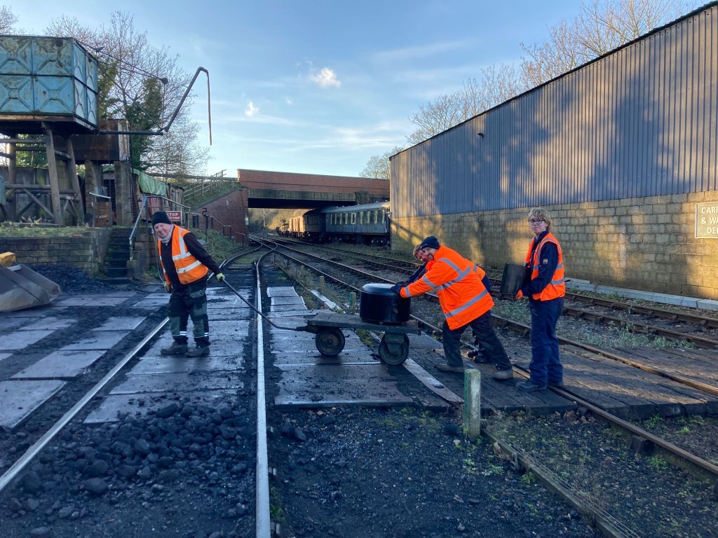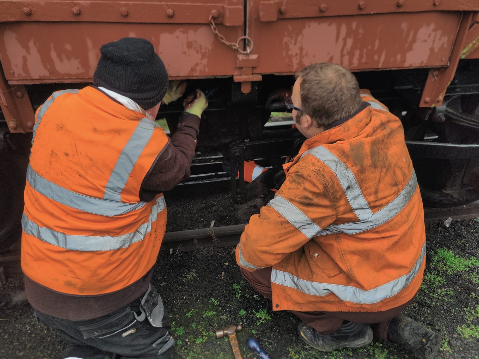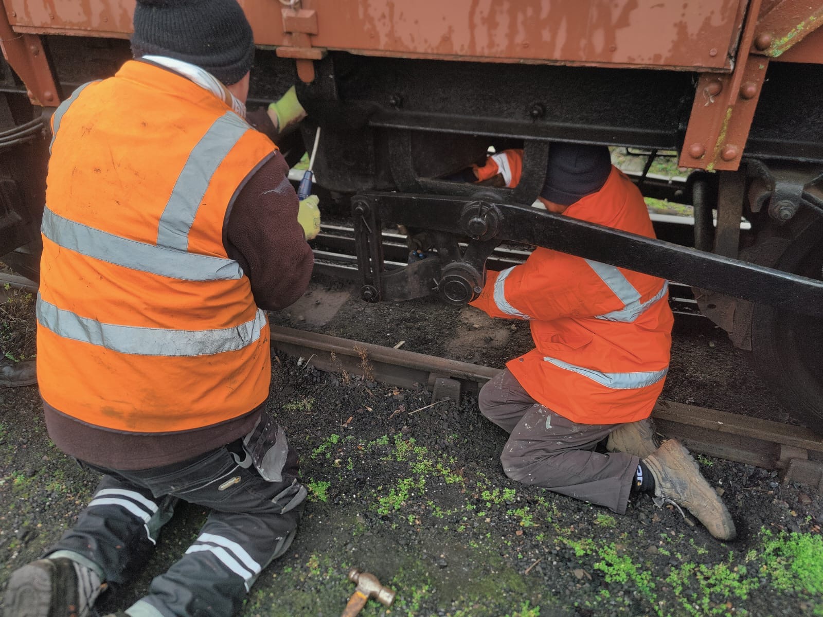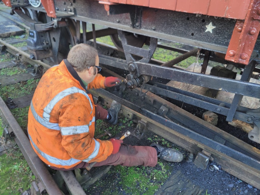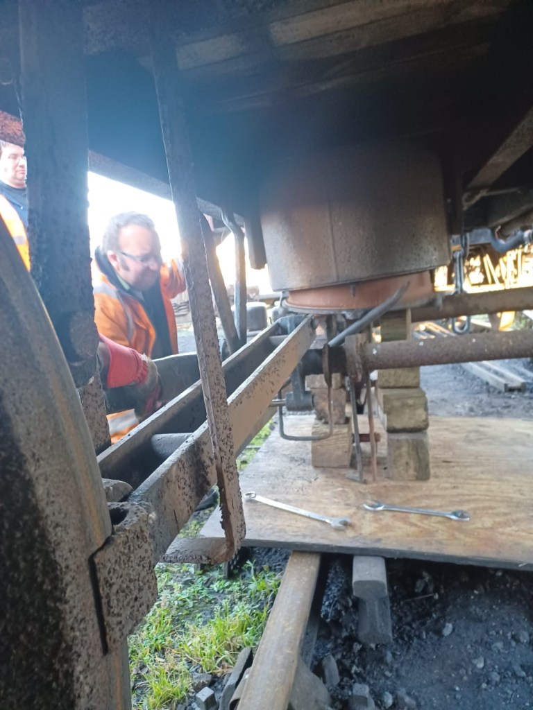 Work started on the three vans shunted in to Wansford yard for attention to the vacuum braking systems.