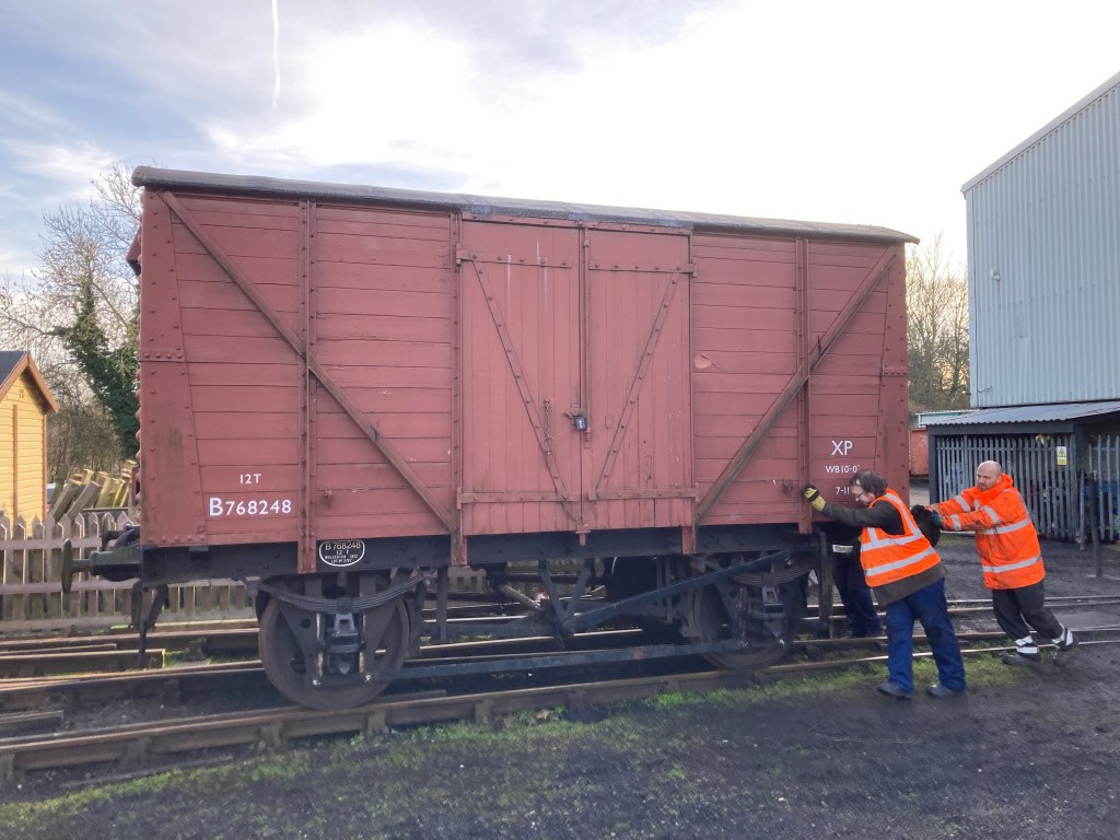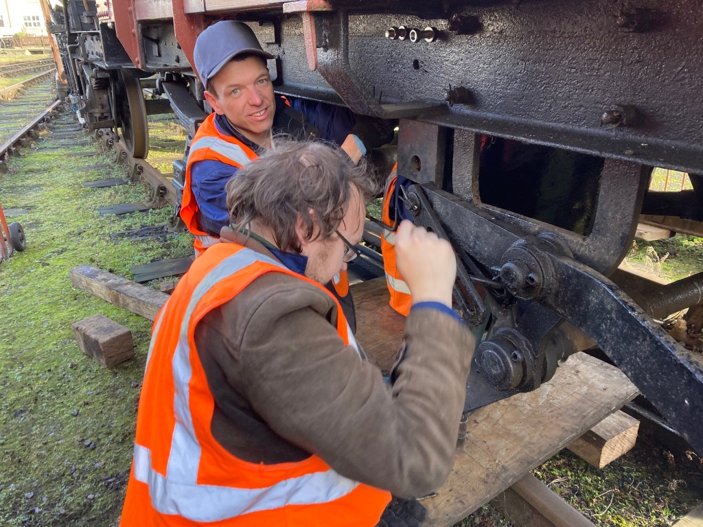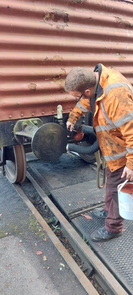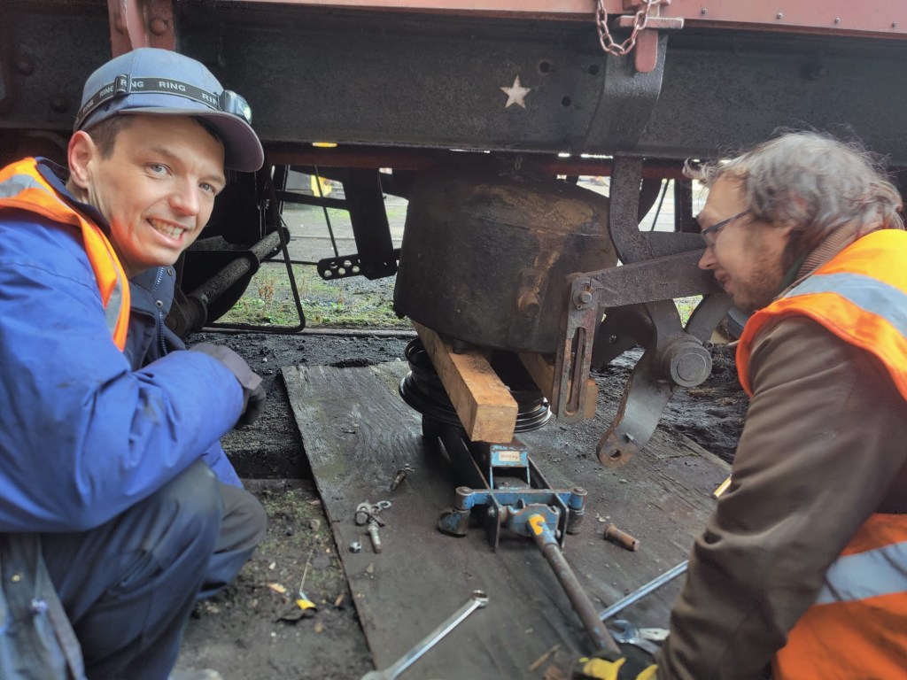Also, during the last week, Paul did a bit of homework and overhauled three valves, then passed them to Tim for a bit of paint. This means we have valves ‘on the shelf’ ready to be fitted and three cylinders in the process of being overhauled. The issue we have now is that we have run out of donor vehicles with outside hangers for cylinders, so we are going to have to make some. We are also missing some links between the cylinder piston and the brake arm, so these will also need to be made up. The final job of the day was to push B768248 back to couple to the other vans in the yard. It will receive a cylinder as soon as a hanger has been made.