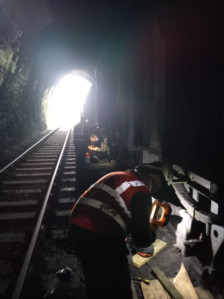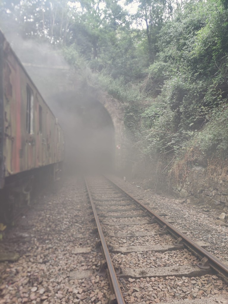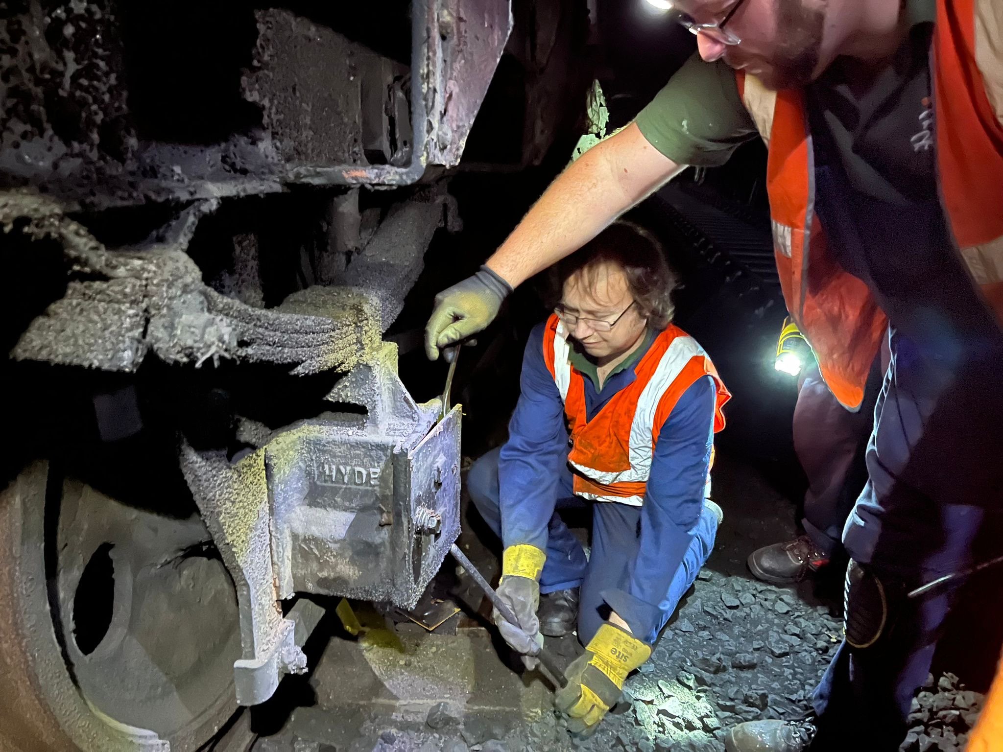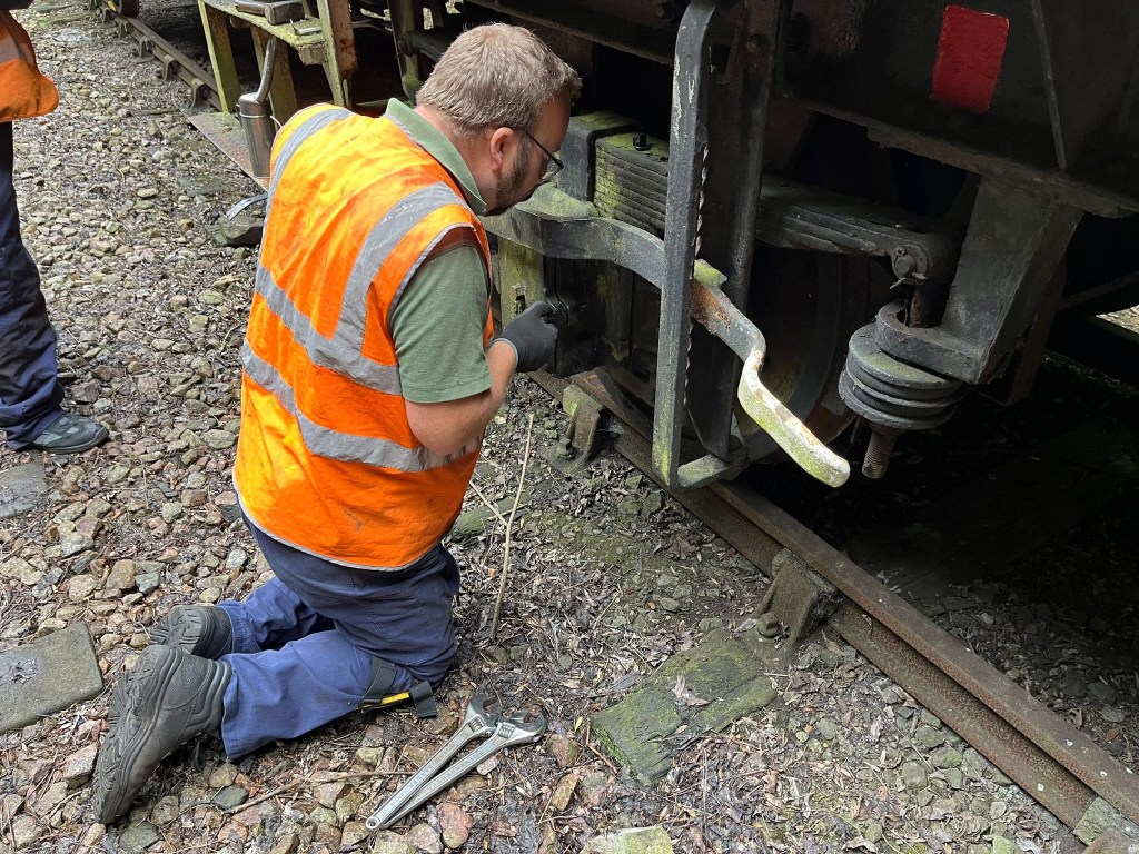 The main issue with working on a Saturday was the running of trains. Tim was in charge of works and kept in constant contact with the signal box to ensure we were out of the tunnel for the passage of trains and suitable protection arrangements were in place. Unfortunately, after a train had passed we had to wait a while for smoke to clear, but this meant plenty of time for chatting about wagon matters.