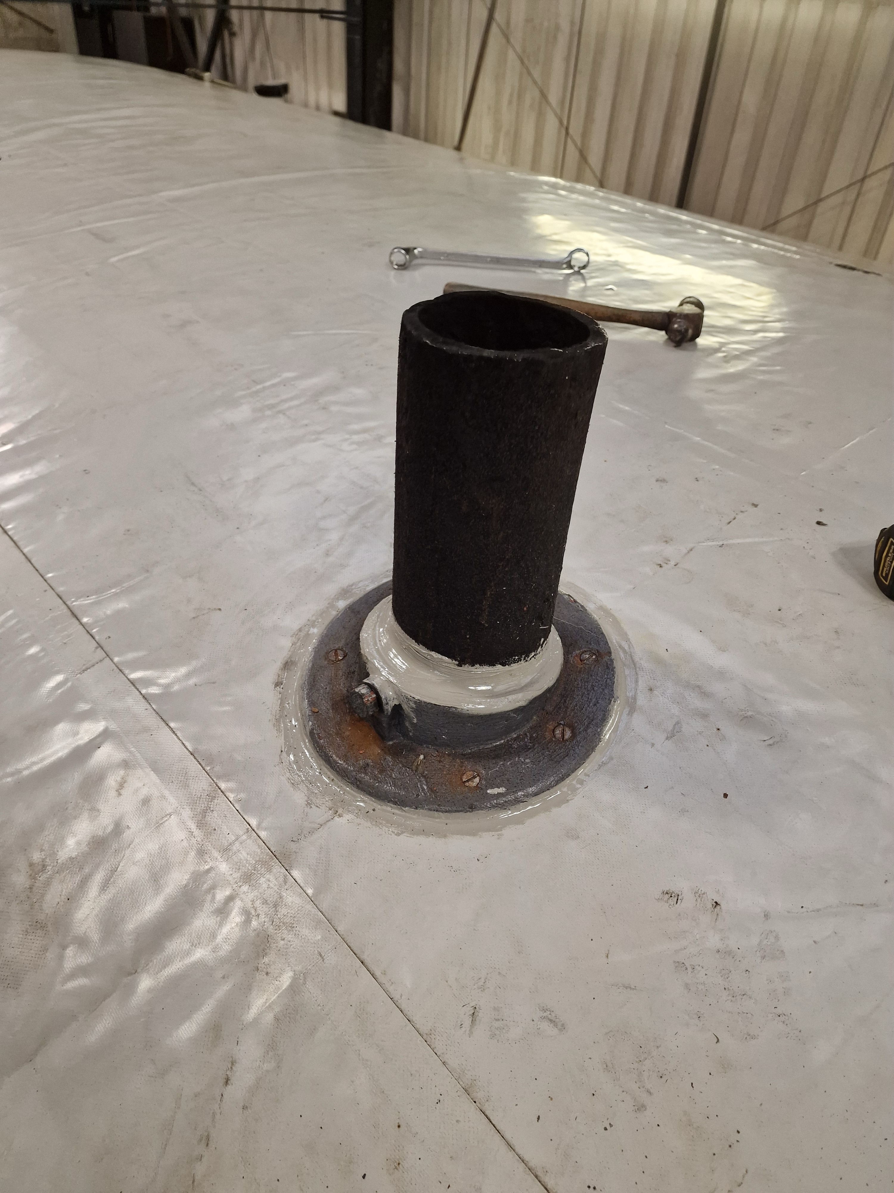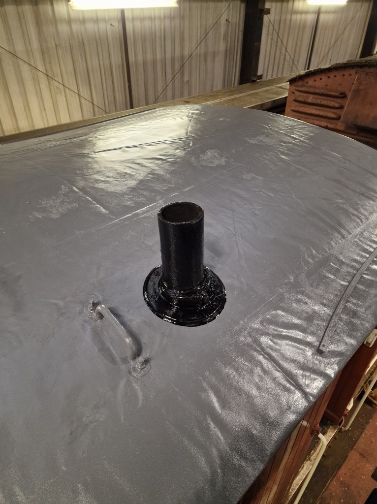 Refitting the roof furniture was next, starting with the chimney, fire resistant sealant being applied between the roof and roof ring as well as between the roof ring and the chimney.