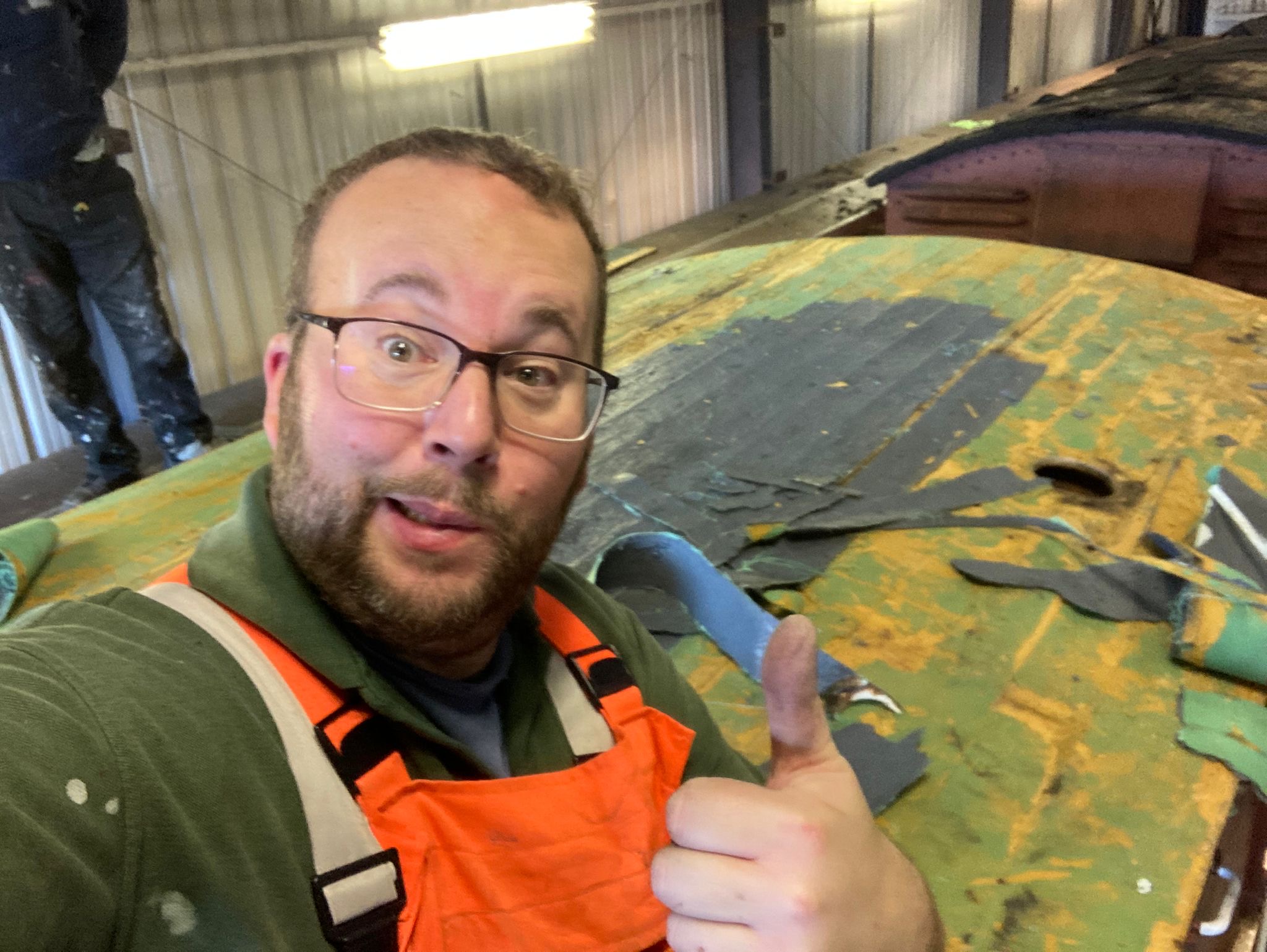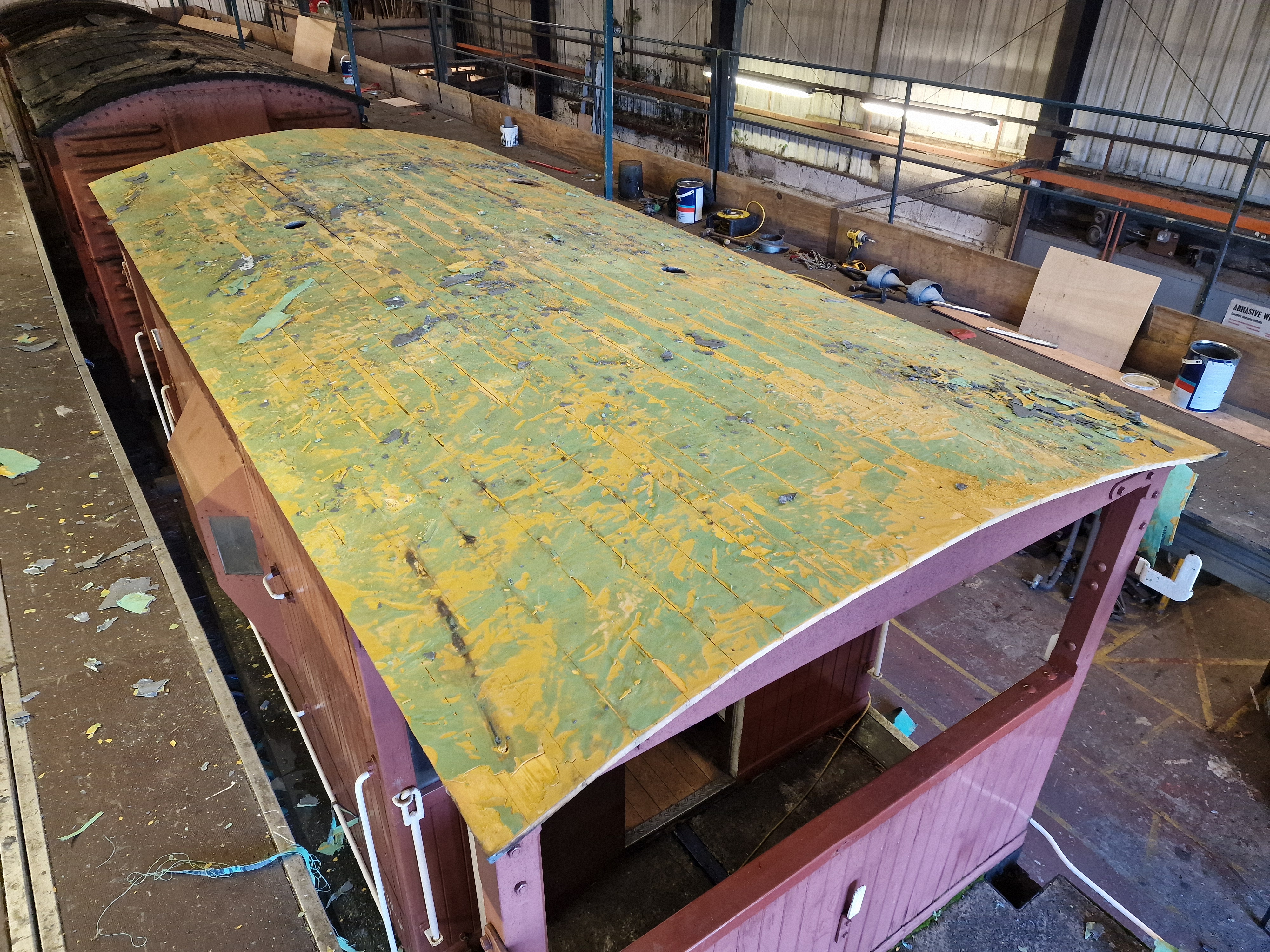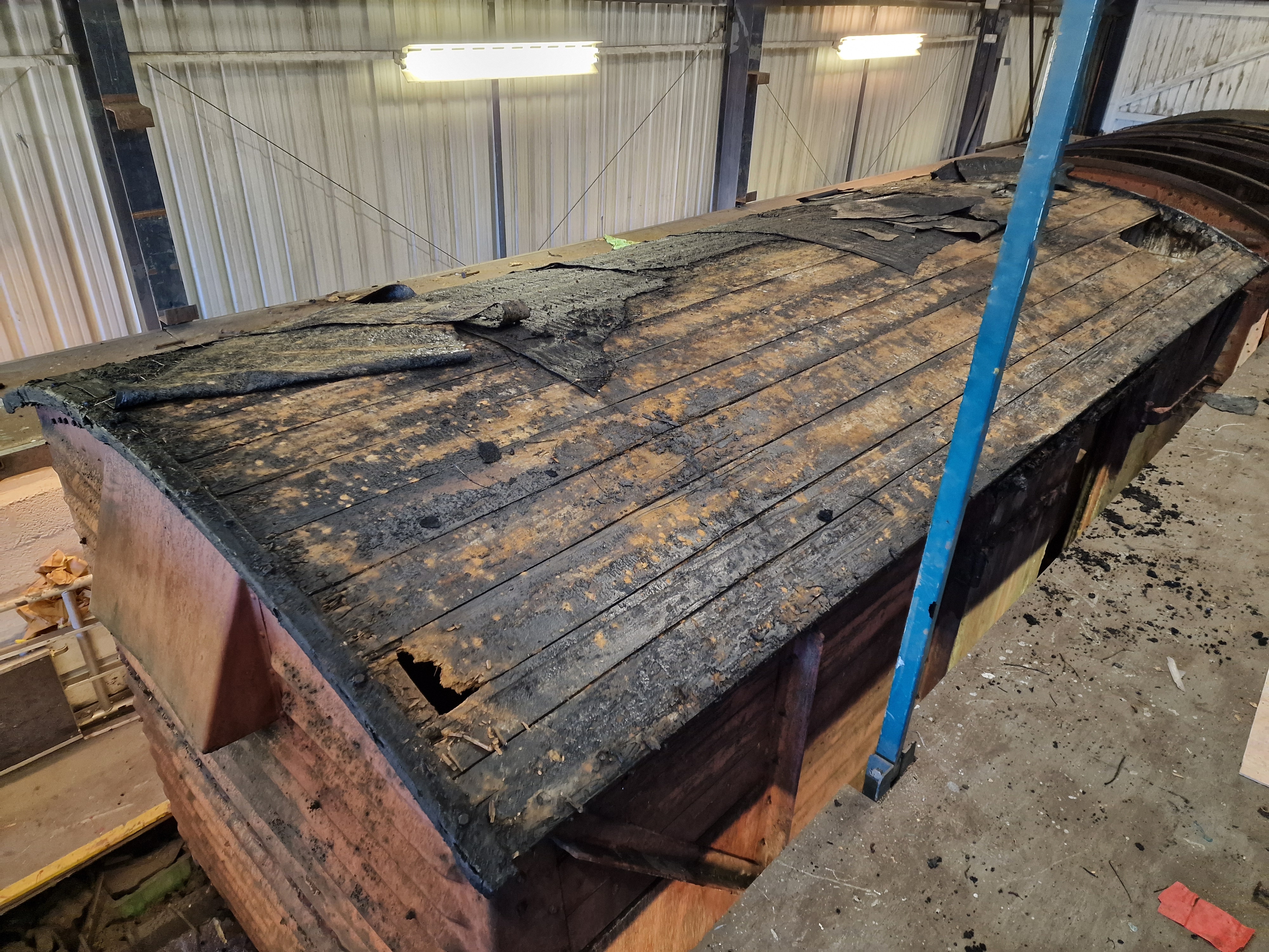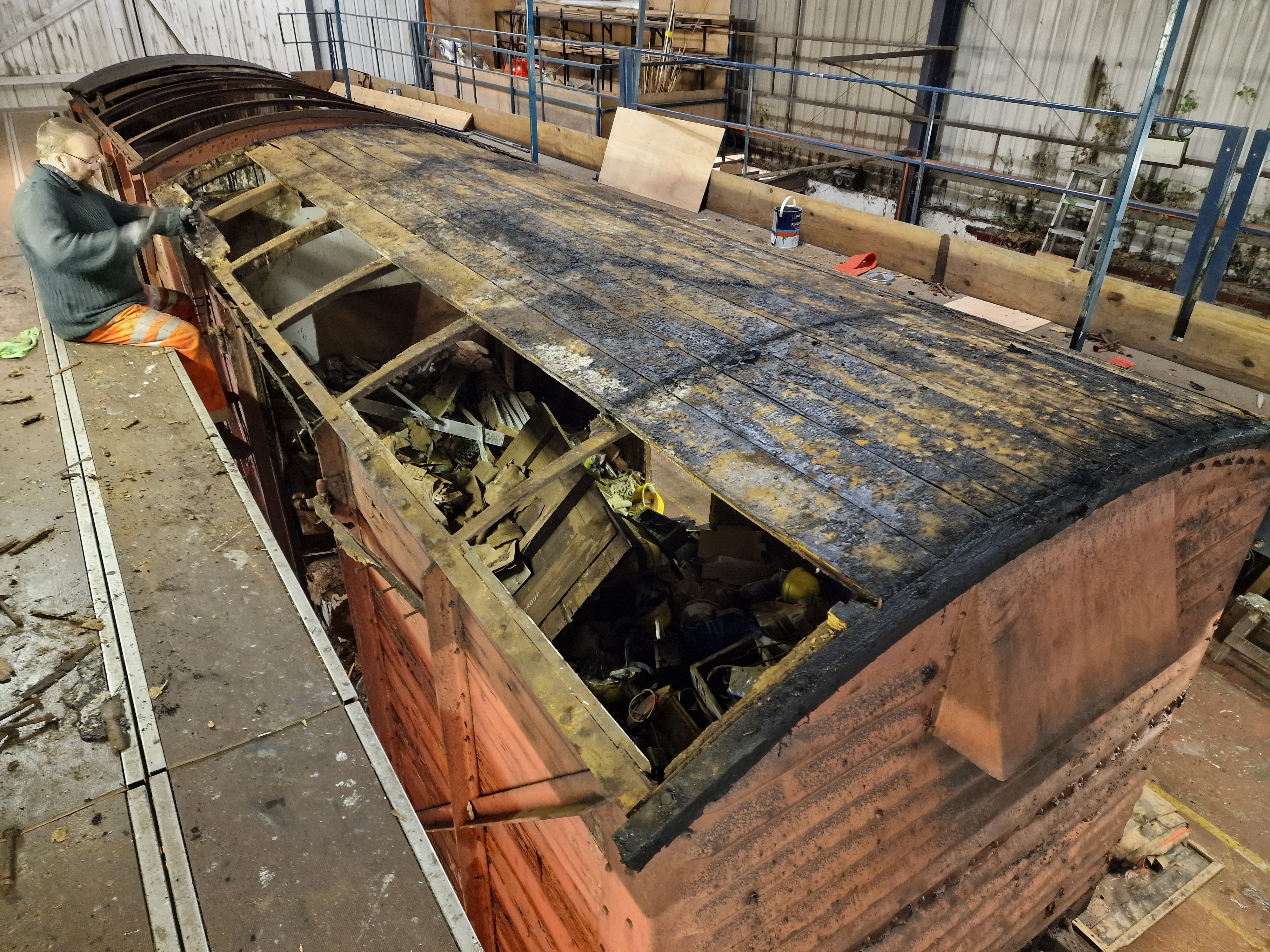 Tim took a closer look at B774874s roof, it was hoped that this would be a resheet, the wood however had other plans with very rotten planks, with Tim removing those that were unsound.