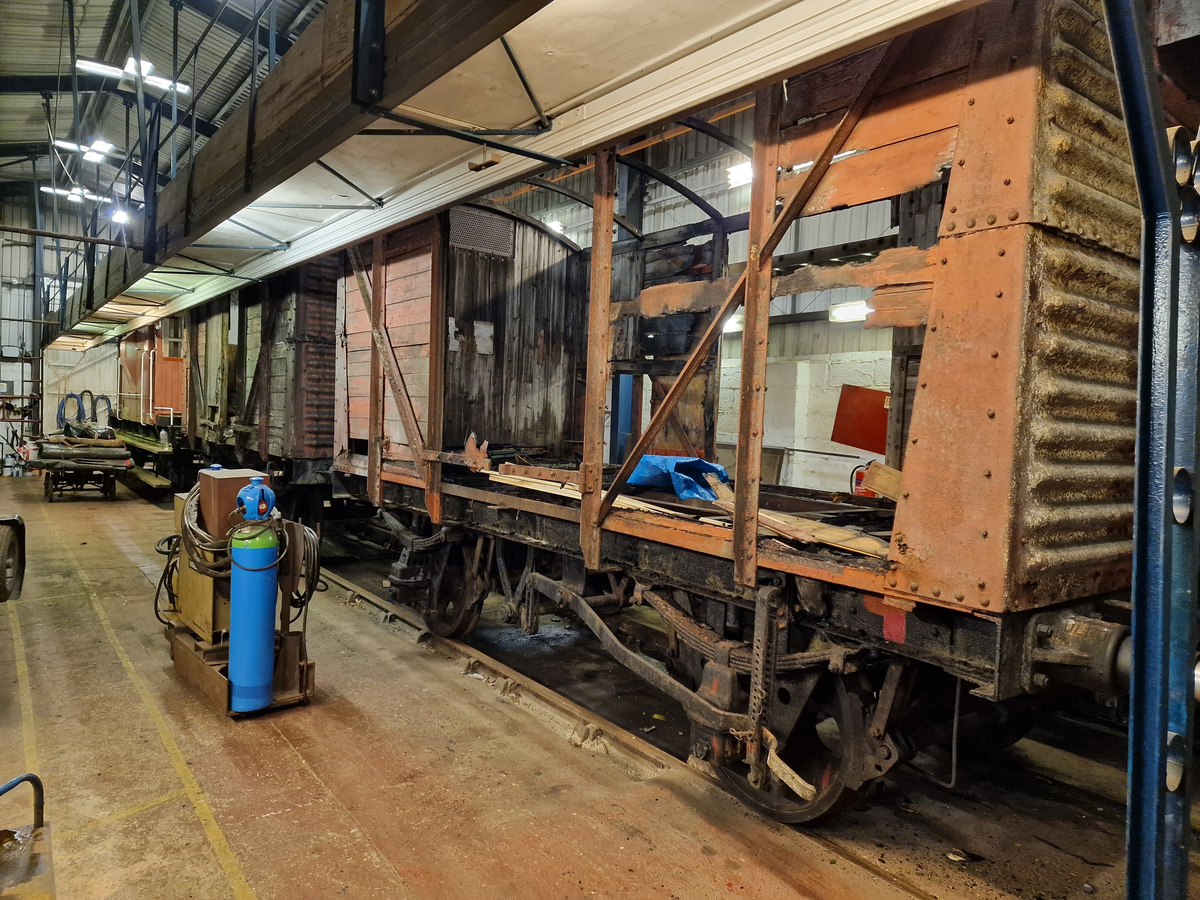 After a touch of bauxite to the roof hoops and noggin retainers the completed vehicles were evicted to the east with our final 3 vehicles for roof work entering from the west. These being B953944, B774874 and B778019.