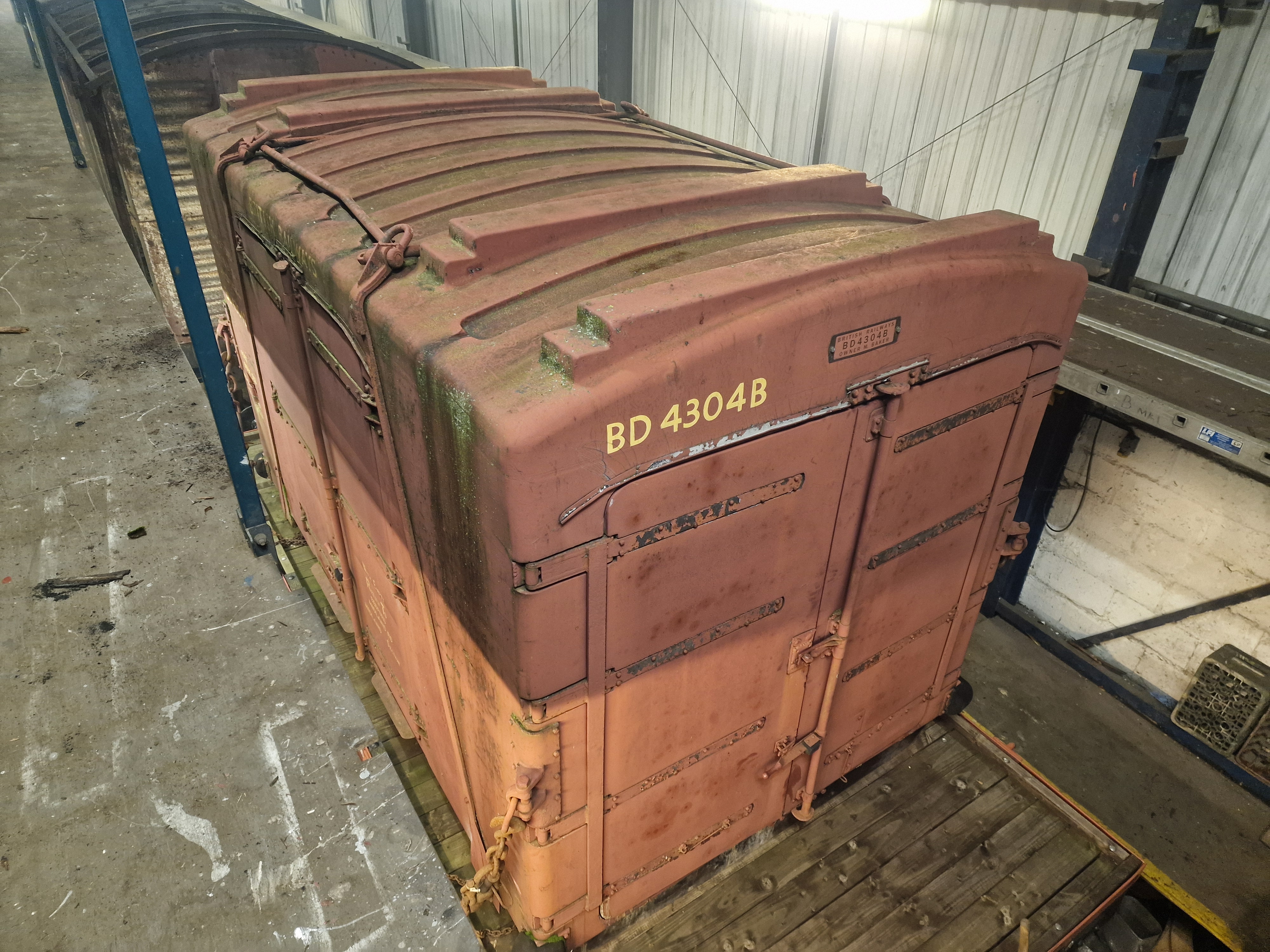 The vehicle entering the shed being B707261, although what it carries will be the object of my attention for the next few days. That being my 1959 Mickleover Transport built trial fiberglass container BD 4304B.