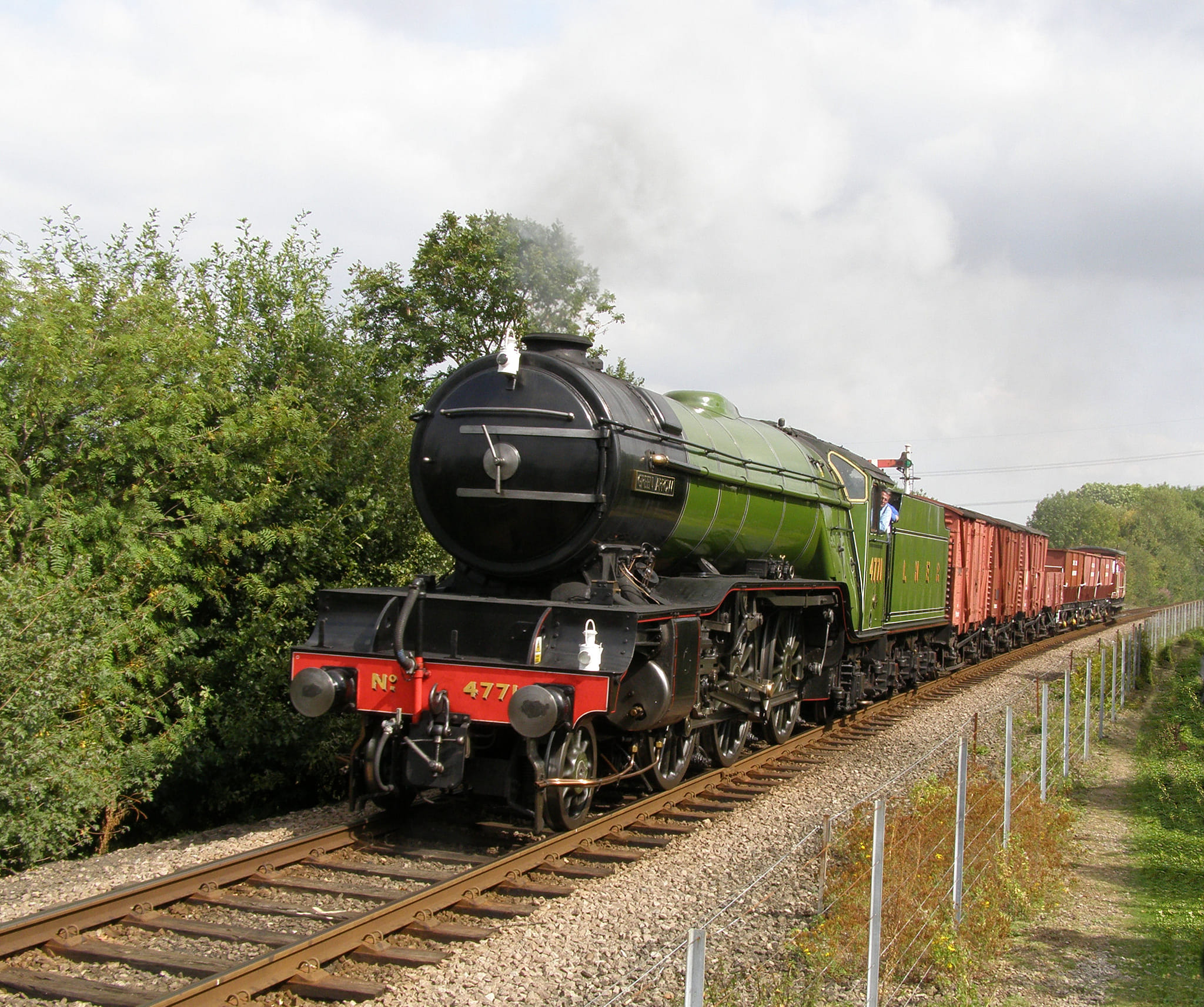 2007 LNER V2 4771 ‘Green Arrow’ hauls the freight rake during the steam gala.