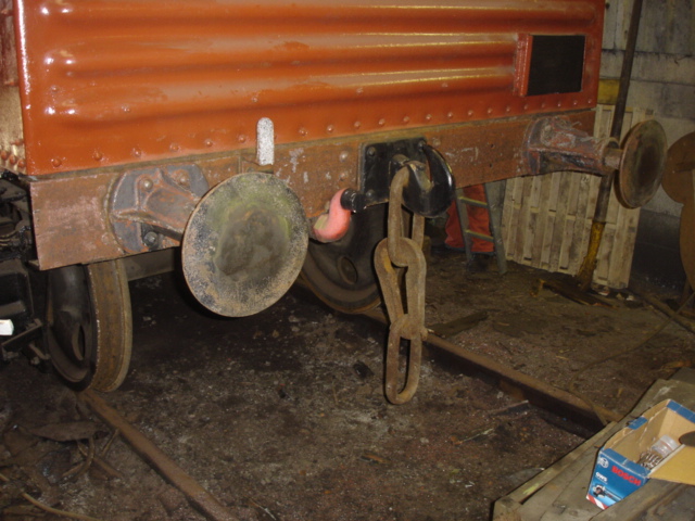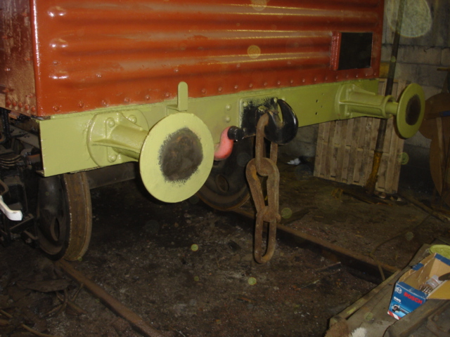 The headstocks (buffer beams) and buffer shanks were also needle-gunned back to bare metal, as a fair bit of the old paint was flaking off and there were some small areas of rust-pitting that needed cleaning up.