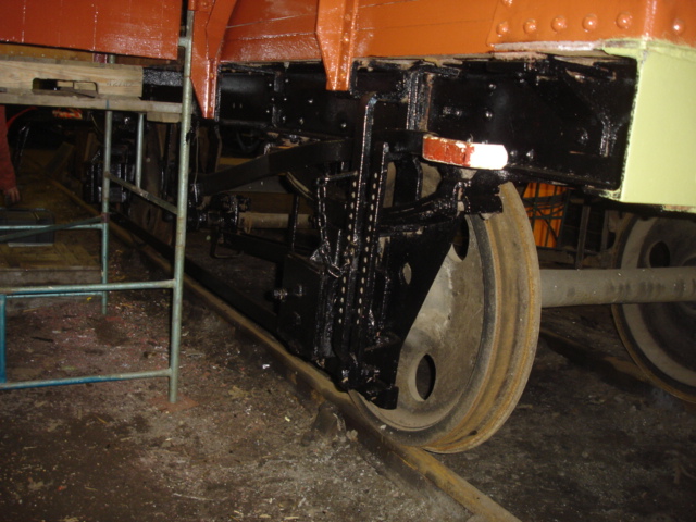 While work was progressing on the roof, work was also being undertaken on the underframe. After being brushed down, the north side has now been painted with gloss underframe black to make it more presentable.