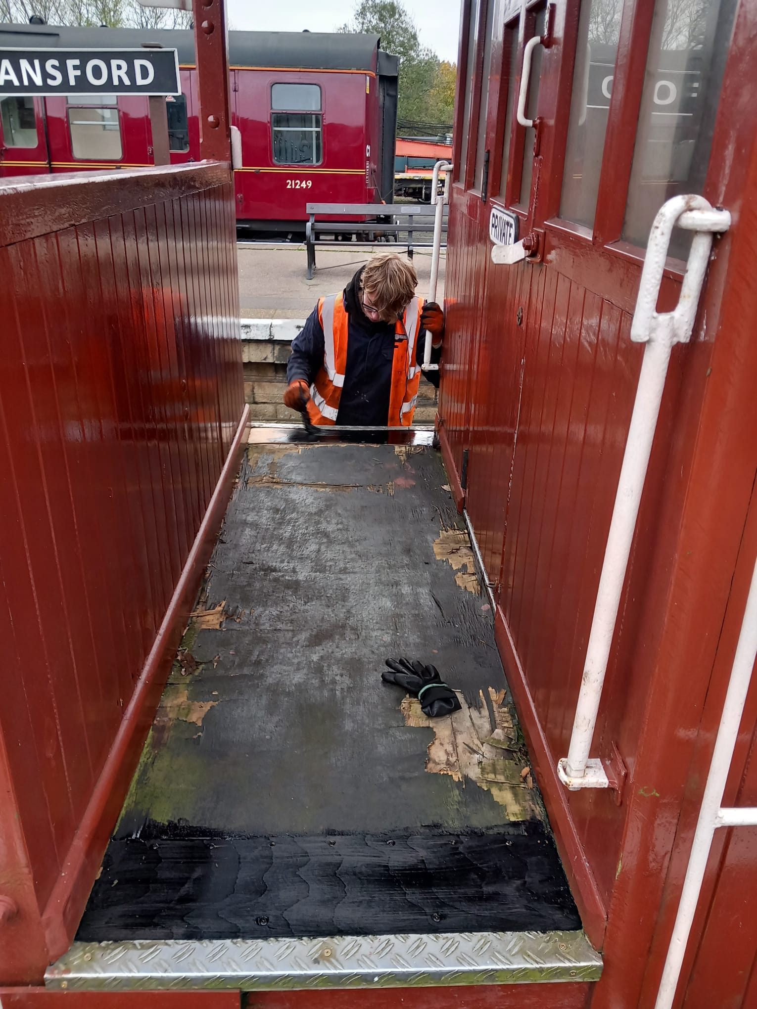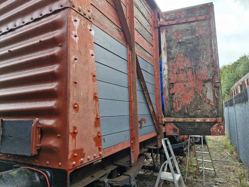 Next on the list was a slight roof repair to BR Van B768248, so Steve and Tim tackled this, whilst some others made an early departure.
