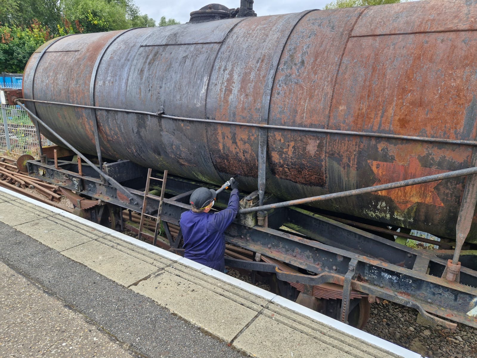 This working session there was a good turnout to try and achieve a big job. We have been very lucky to receive a bequest of money from a member of the railway that passed away earlier in the year, so it was decided to spend the money on new springs for the, as yet unrestored, LMS Brake Van at Wansford.