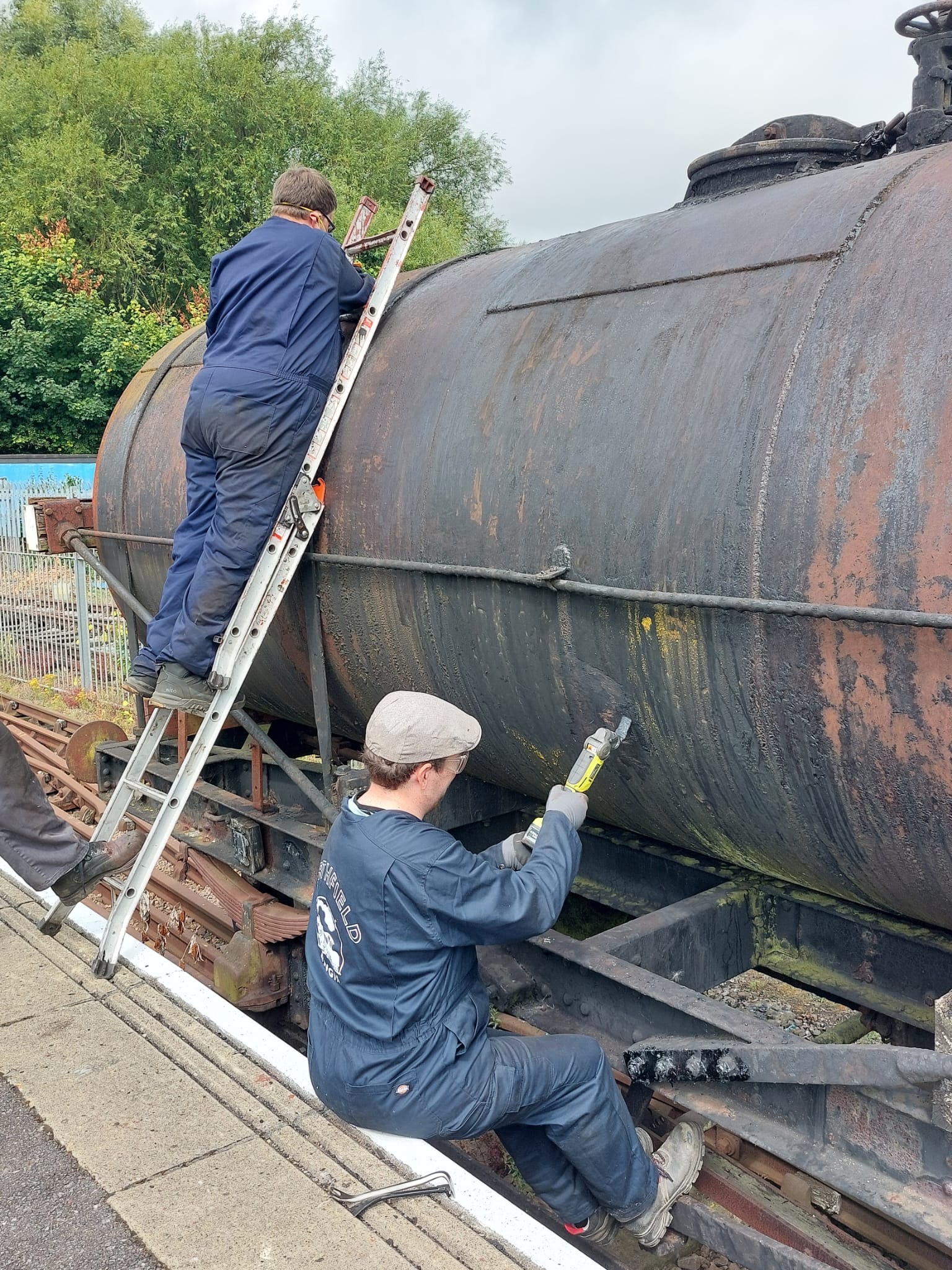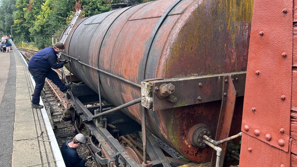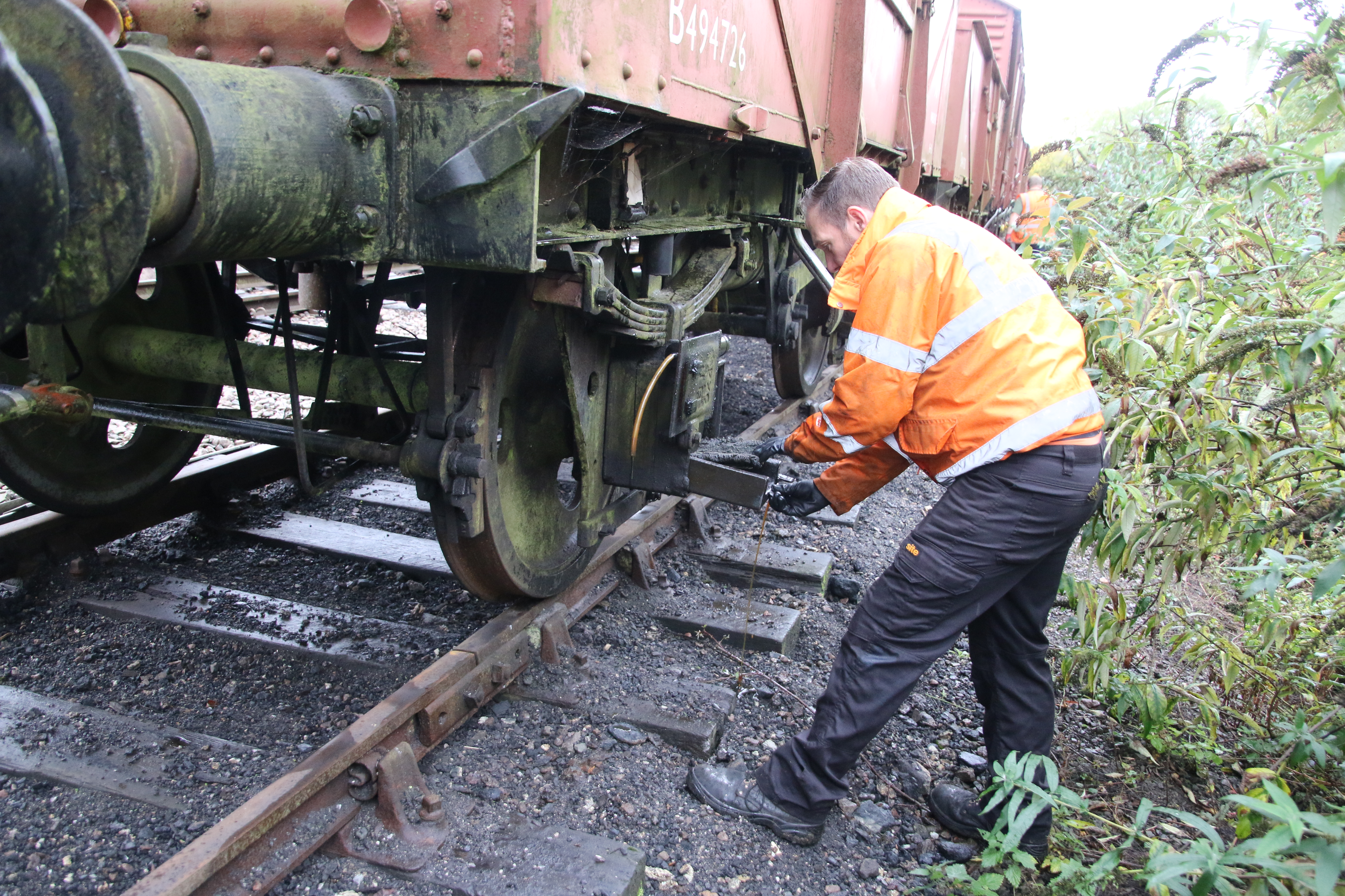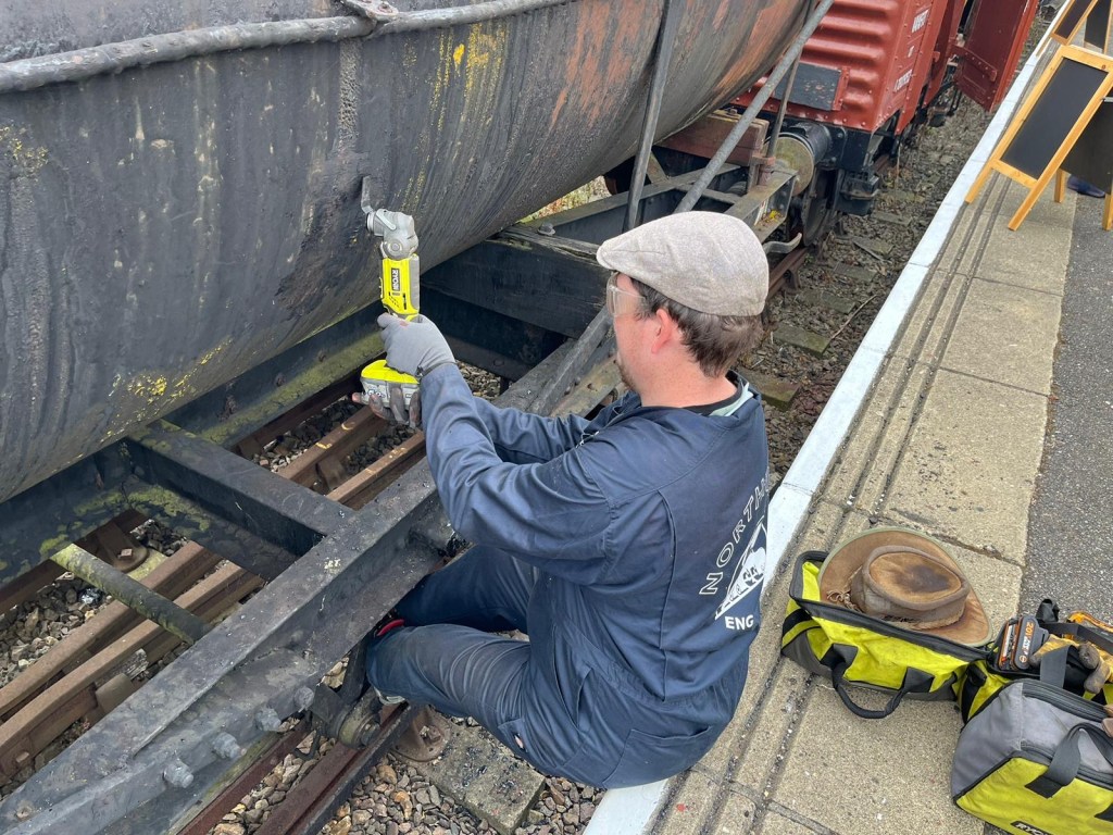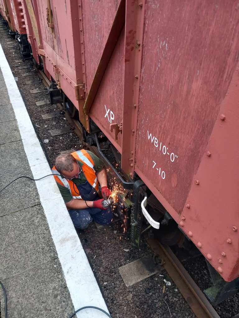 Whilst Tim and Annika headed to the running rake to carry out a few little jobs, the rest of the team, lead by Steve, started to remove the old springs so they could be sent away and assessed for repair or replacement. Unfortunately, after a few hours of toil the nuts on the spring hangers couldn’t be removed, so the endeavour stalled for now.