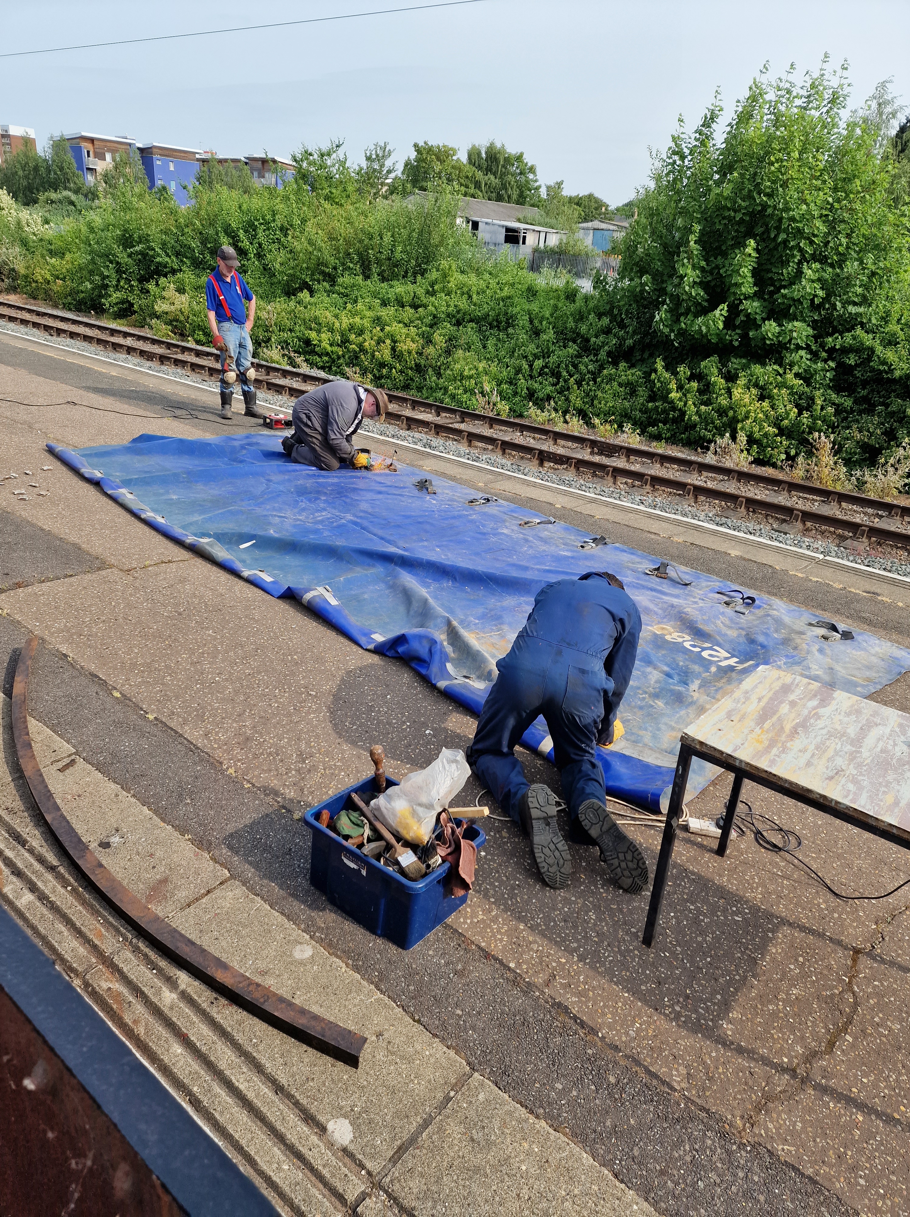 What we are calling the Quorn covering, as this has been applied with great success by Quorn Wagon and Wagon, the ex lorry tarpaulin was prepared with fixtures removed.